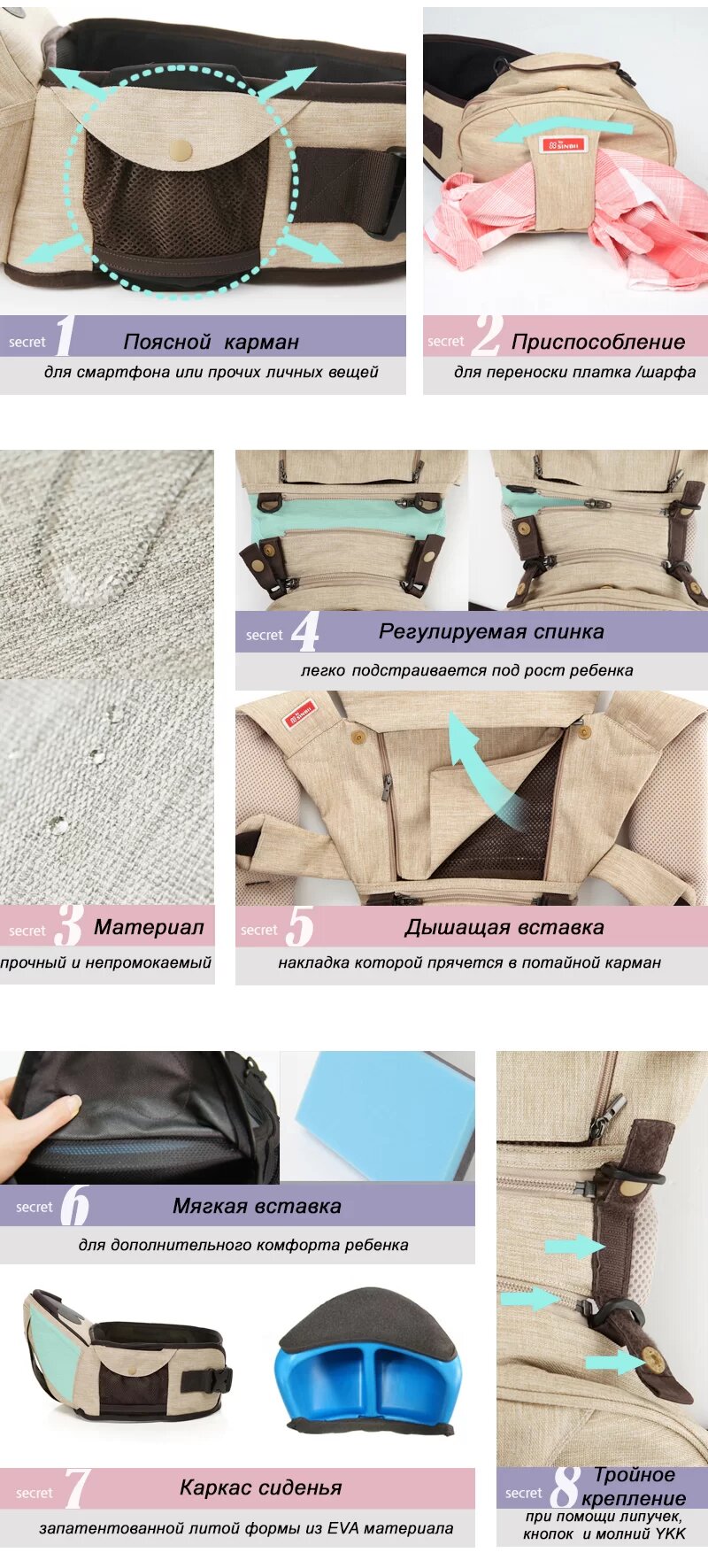 Эргорюкзак + хипсит на двух лямках Sinbii Premium Hipseat S-Fit Set. Бежевый интересное: