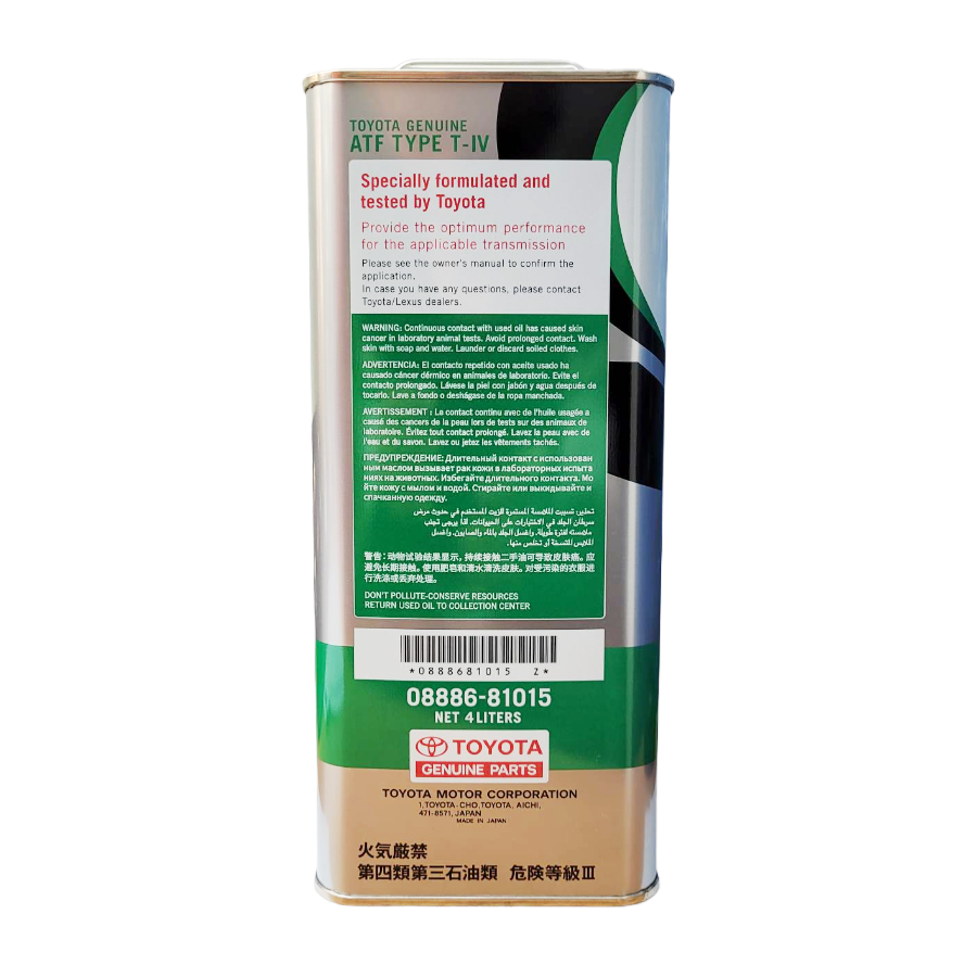 Спецжидкость Atf Type T-Iv 4L (Япония) TOYOTA арт. 08886-81015