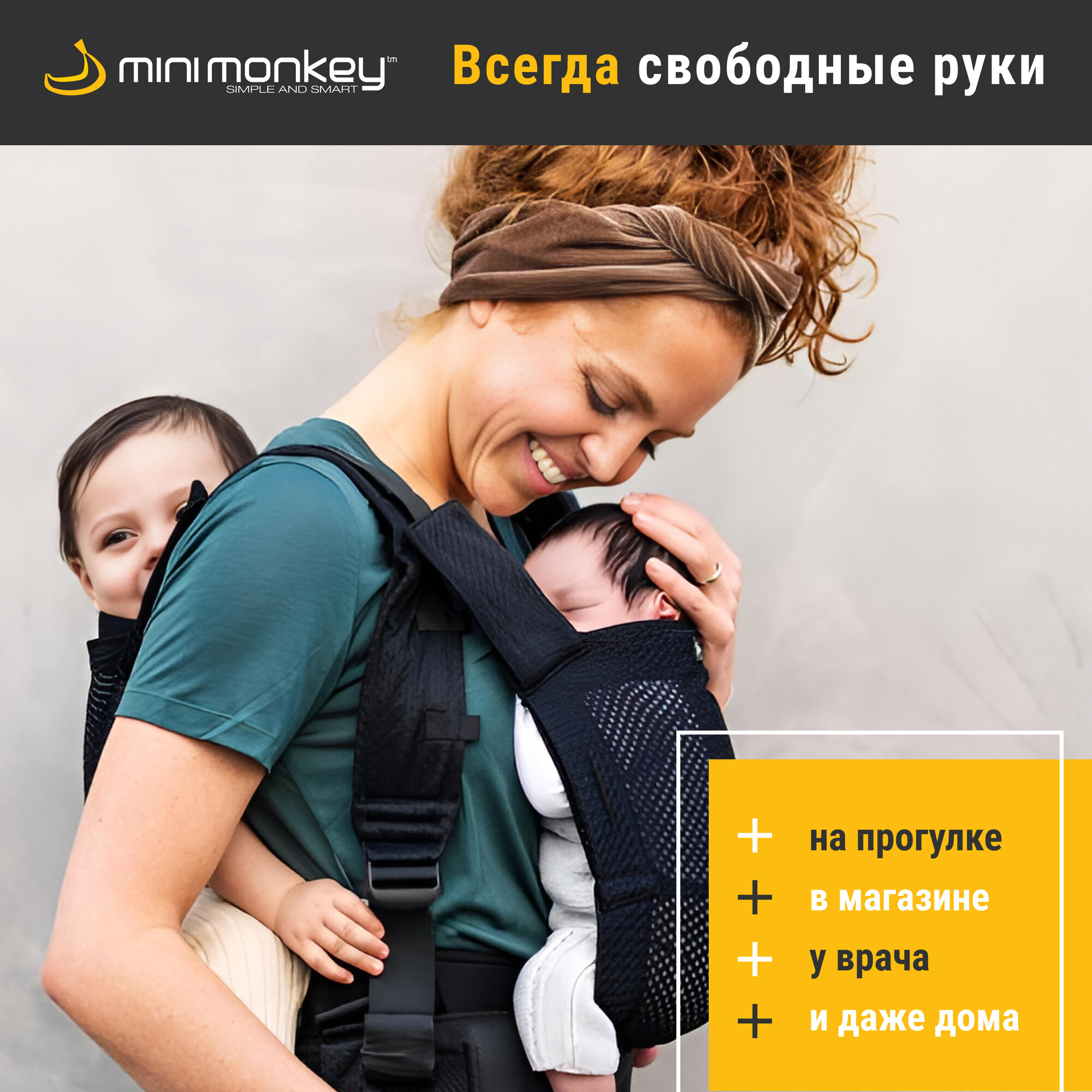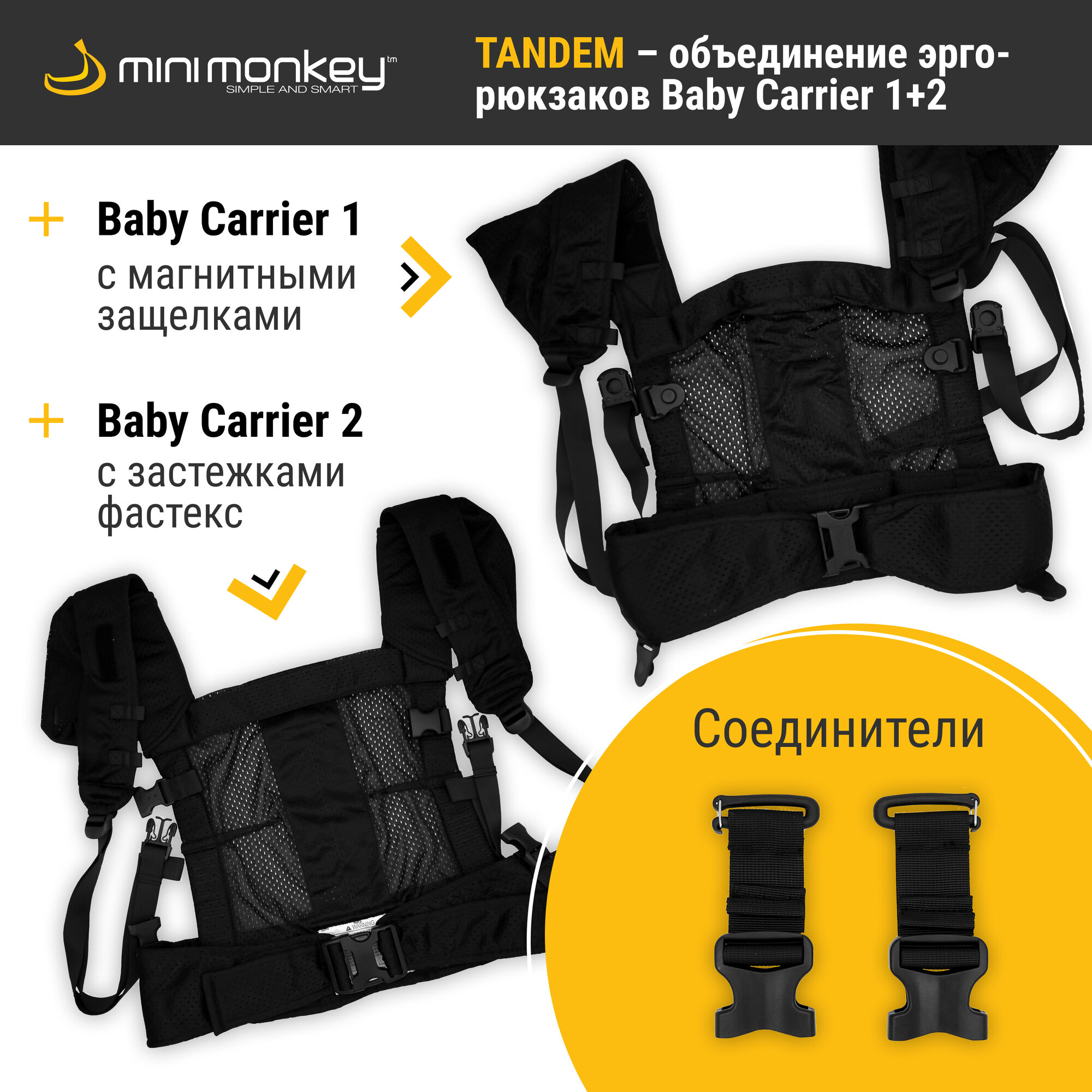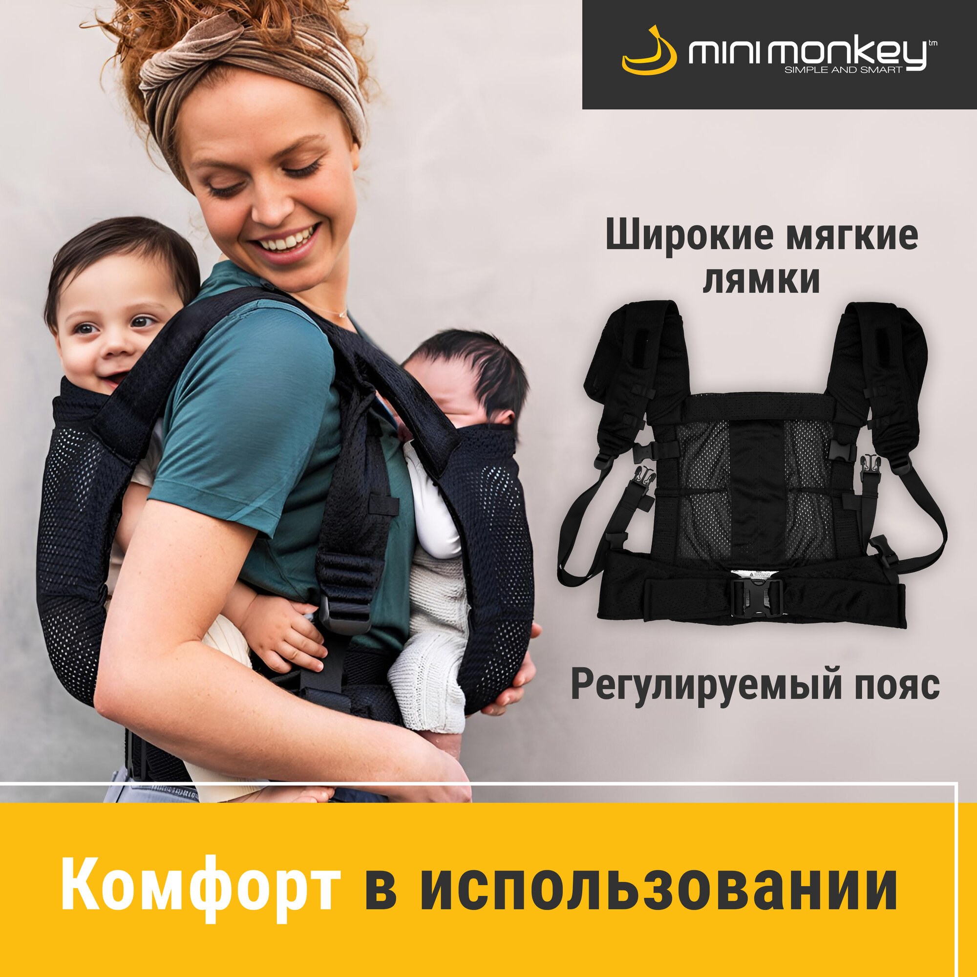 Эрго-рюкзак MiniMonkey "Tandem Carrier", для новорожденных, для погодок, для двоих детей, регулировка, черный интересное: