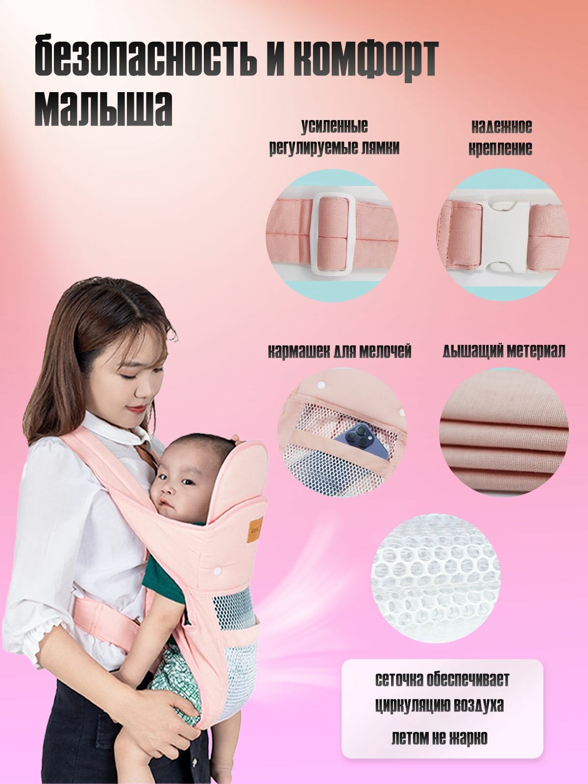 Хипсит Sinbii с карманом и со спинкой на 2 лямках. Розовый.