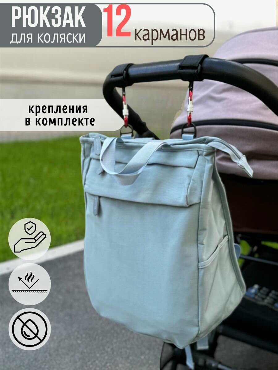 Рюкзак сумка для мамы с креплениями для коляски, голубой интересное: