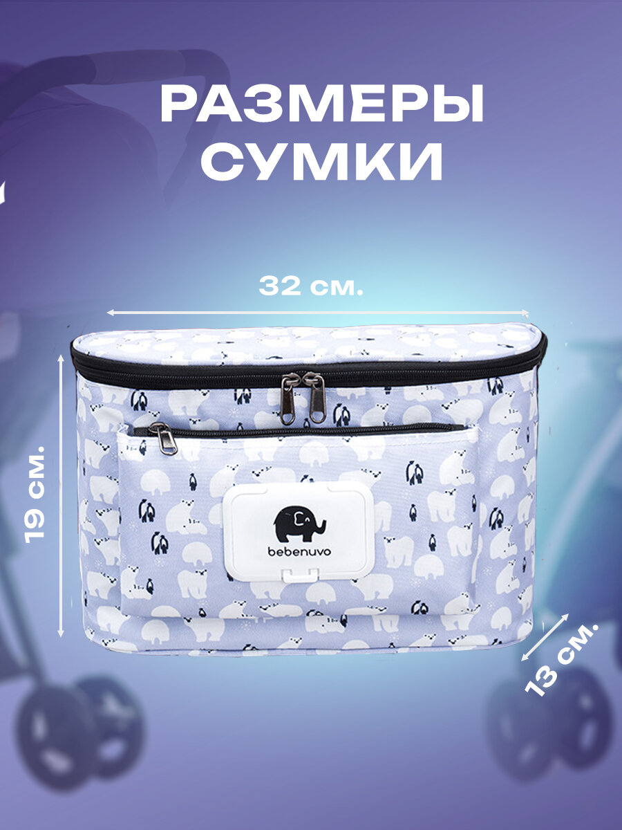 Сумка органайзер для прогулочной коляски, термосумка, отделение для салфеток, синий