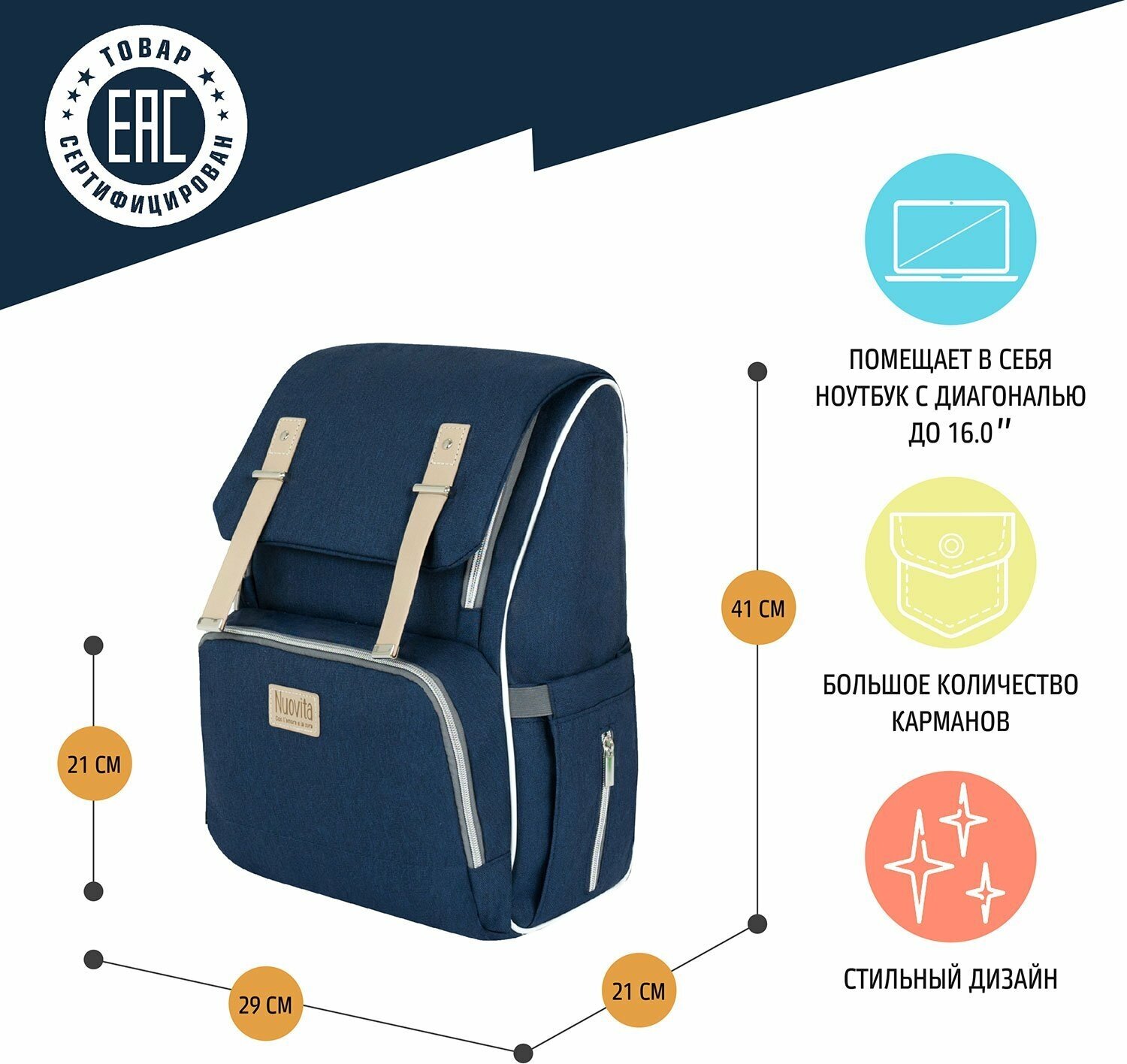 Рюкзак для мамы Nuovita CAPCAP rotta Blu scuro/Темно-синий интересное:
