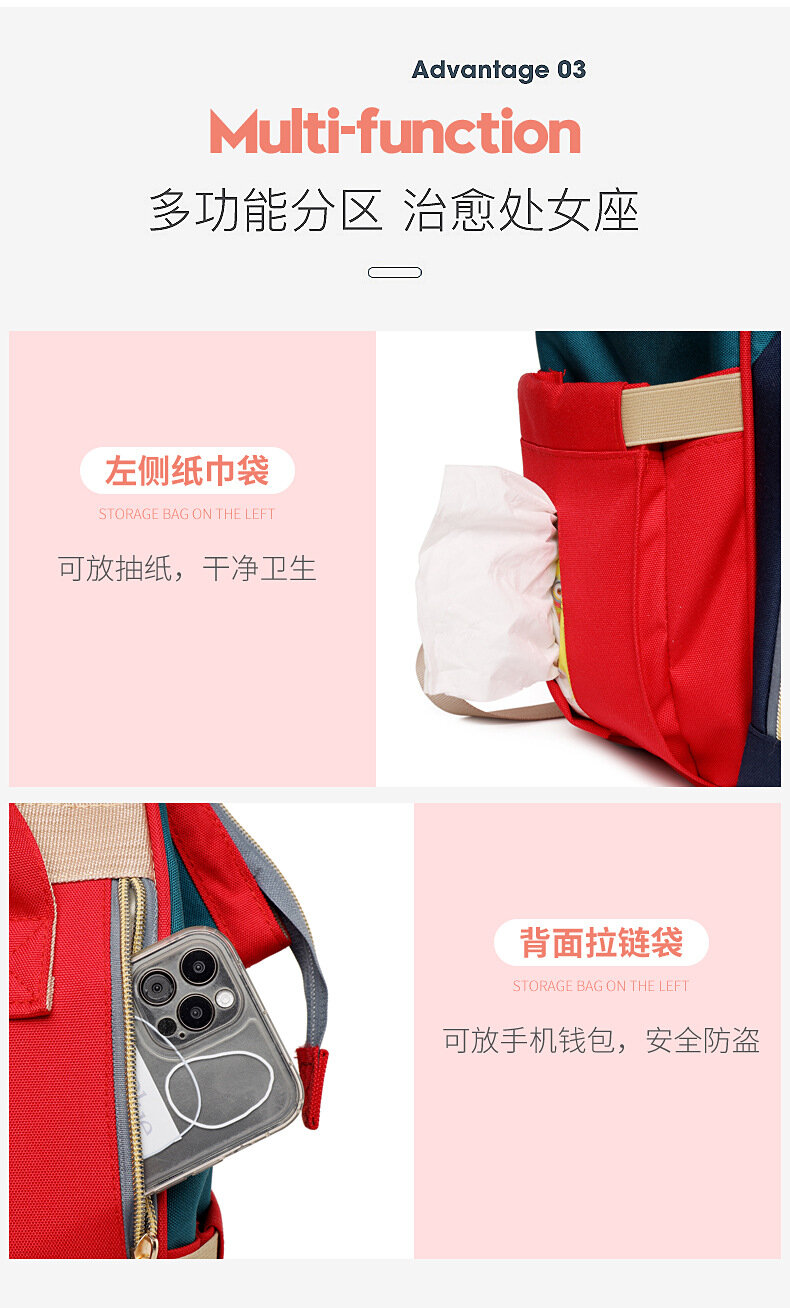 Рюкзак Mommy Bag, розовый, контрастный, в стиле Харадзюку