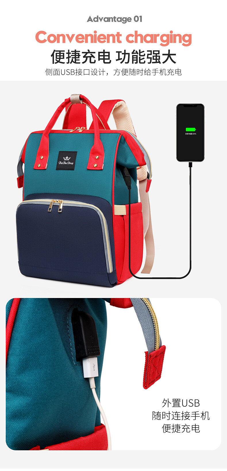 Рюкзак "Mommy Bag", ткань Оксфорд, на одно плечо, контрастный дизайн