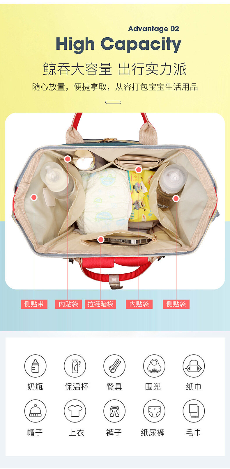 Рюкзак Mommy Bag, зеленый, контрастный, большой, для путешествий