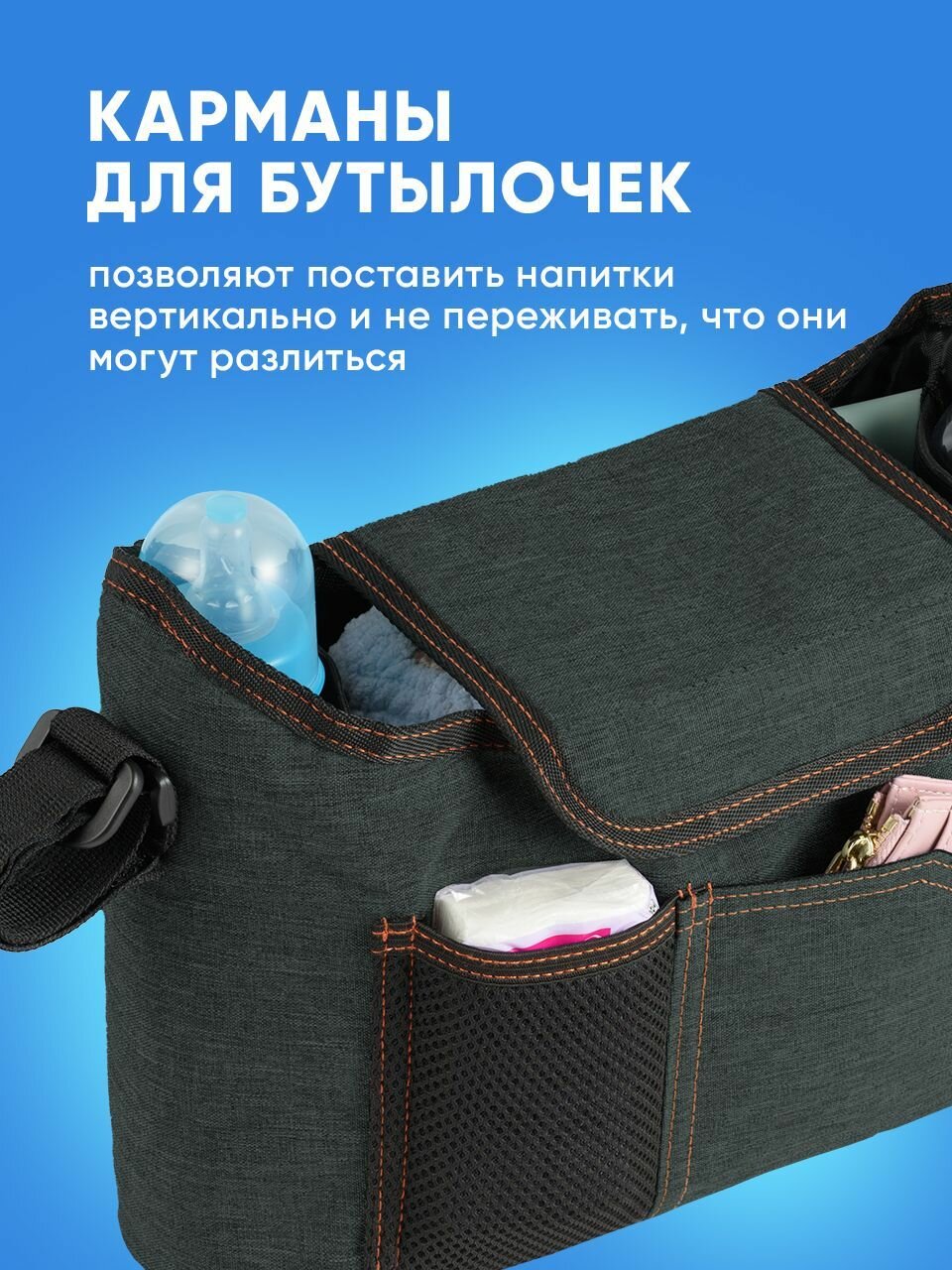 Сумка для коляски прогулочной, Kids Zone, Сумка на коляску для мамы с креплениями