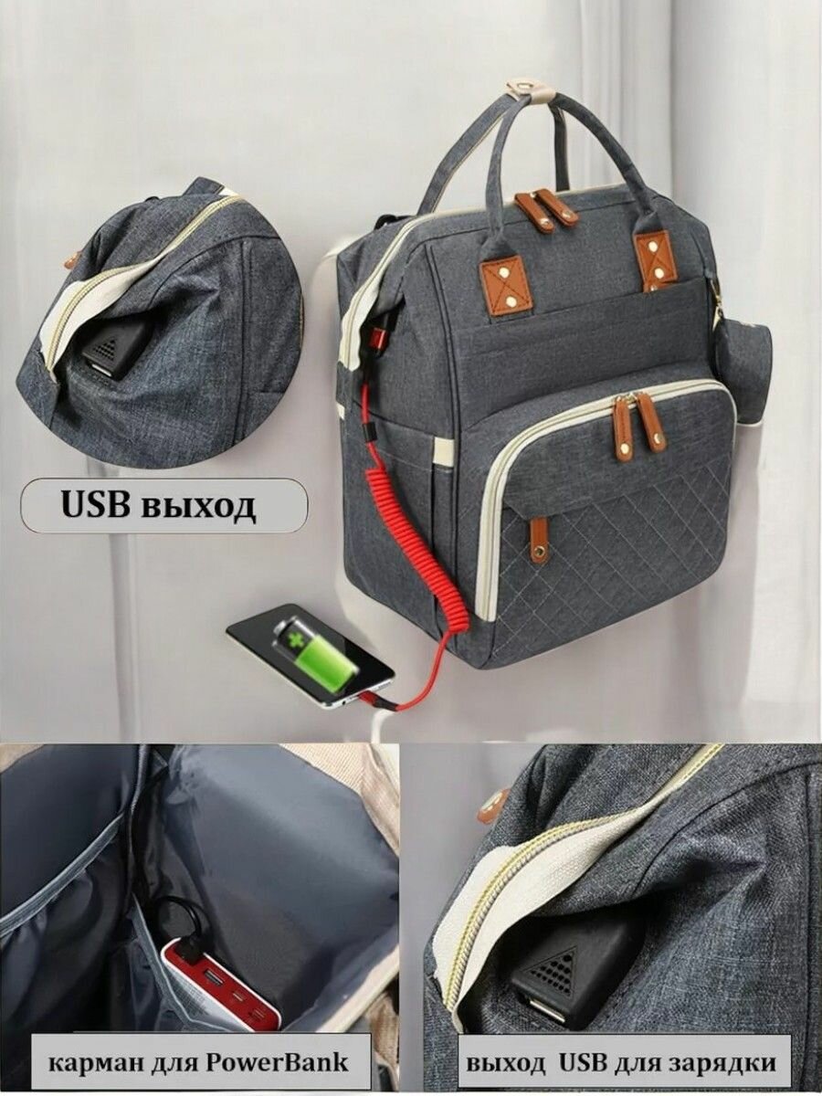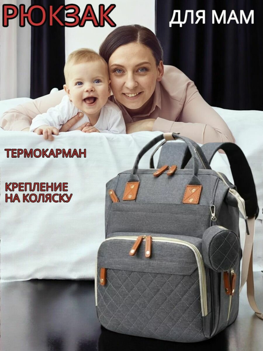 Сумка-рюкзак, для мам, вместительная, универсальная, всесезонная, серая интересное: