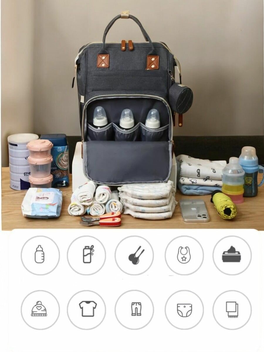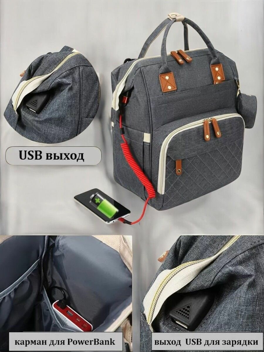 Сумка-рюкзак, для мам, вместительная, универсальная, всесезонная, серая