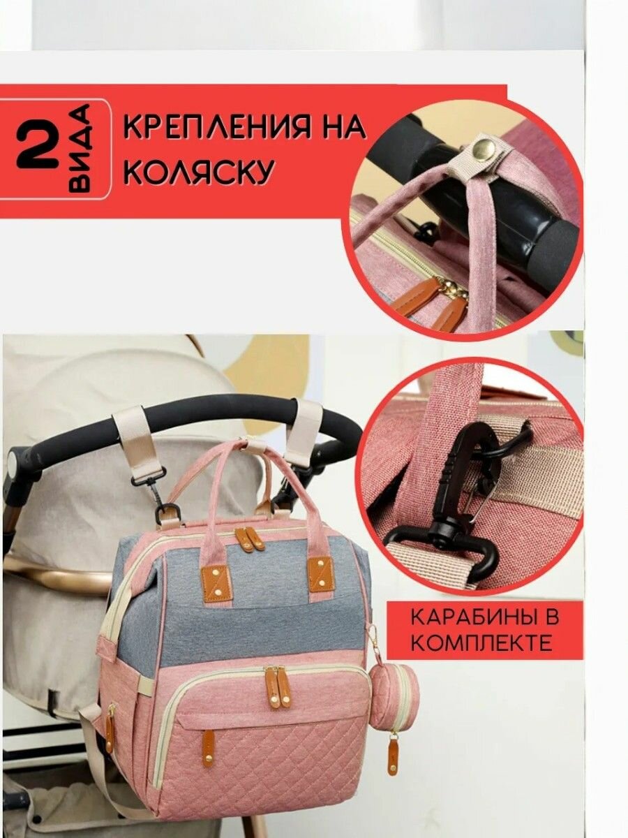 Сумка-рюкзак, для мам, вместительная, универсальная, 20 л, всесезонная, розовая
