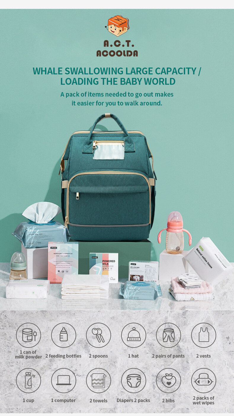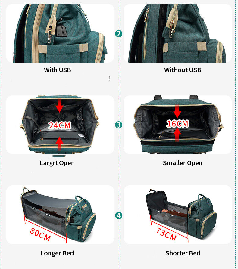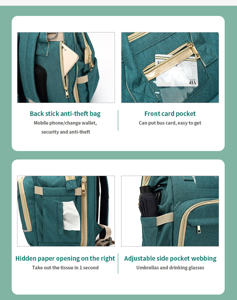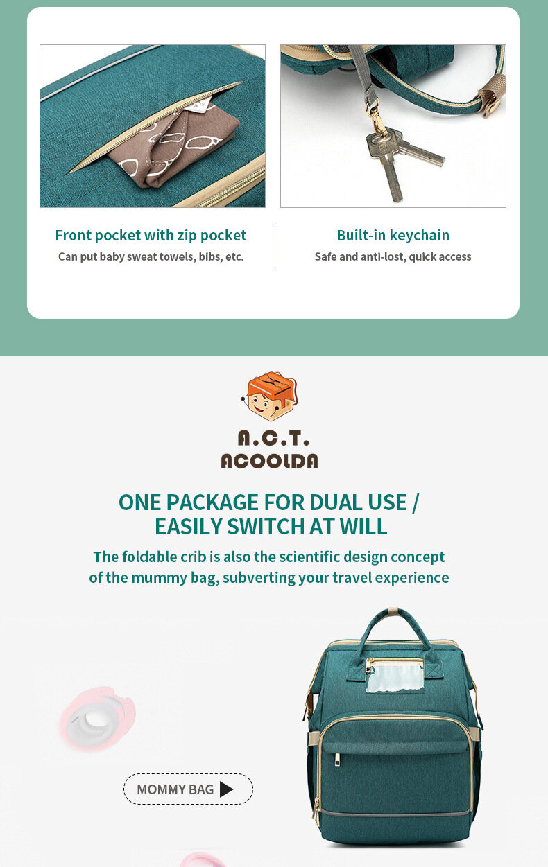 Кроватка-рюкзак Akuda, многофункциональная, складная, зеленая, 20 дюймов