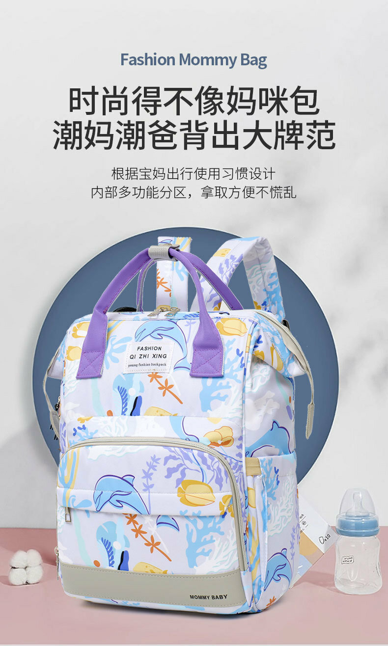 Сумка Bao Ma, для матери и ребёнка, аниме-узор, ткань Оксфорд, фиолетовая