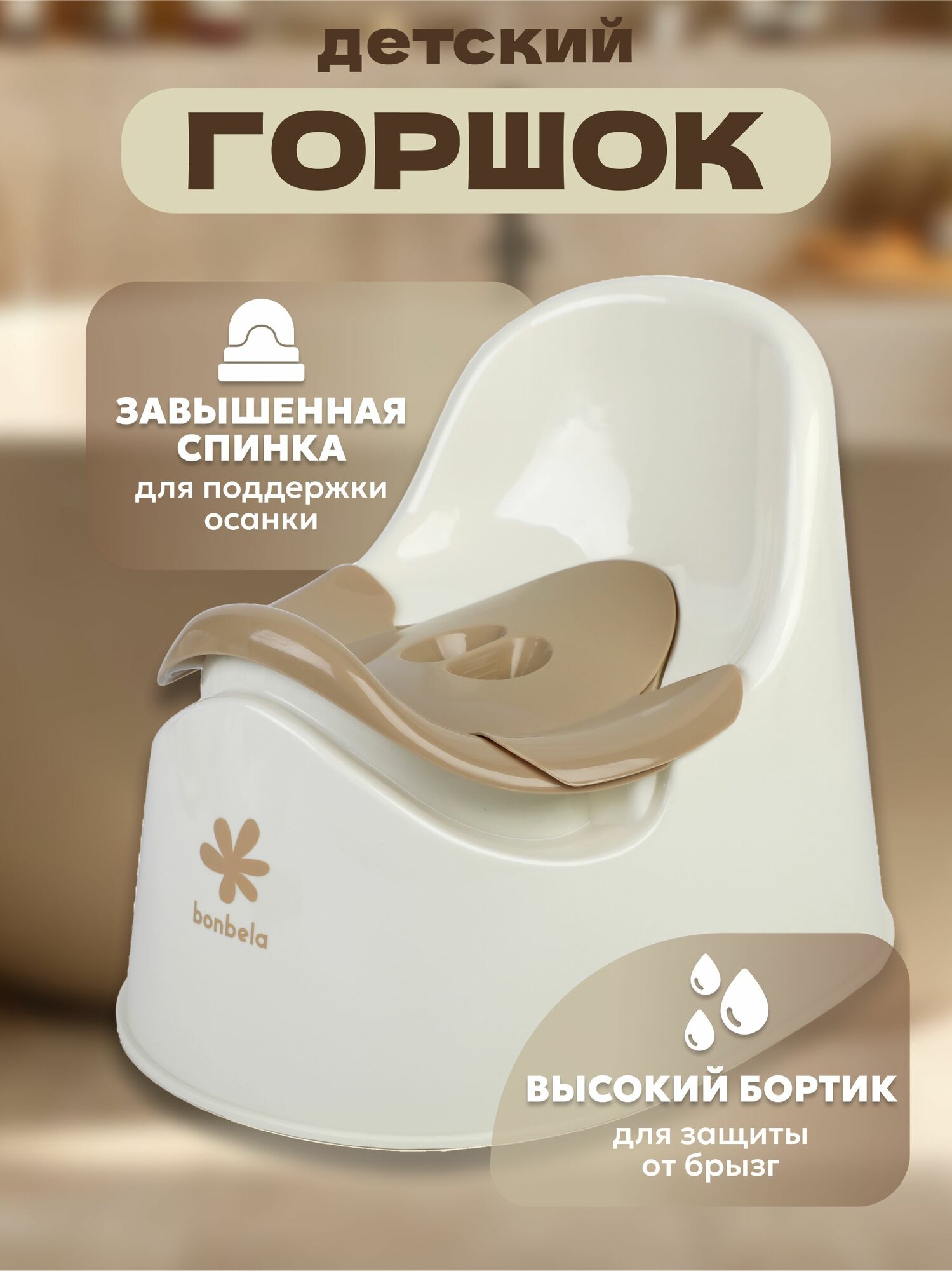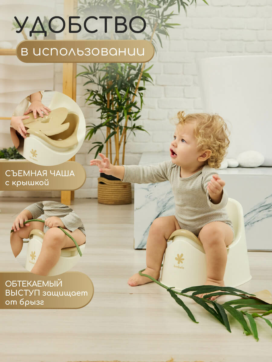 Горшок детский bonbela с крышкой, спинкой и съемной чашей, бежевый интересное: