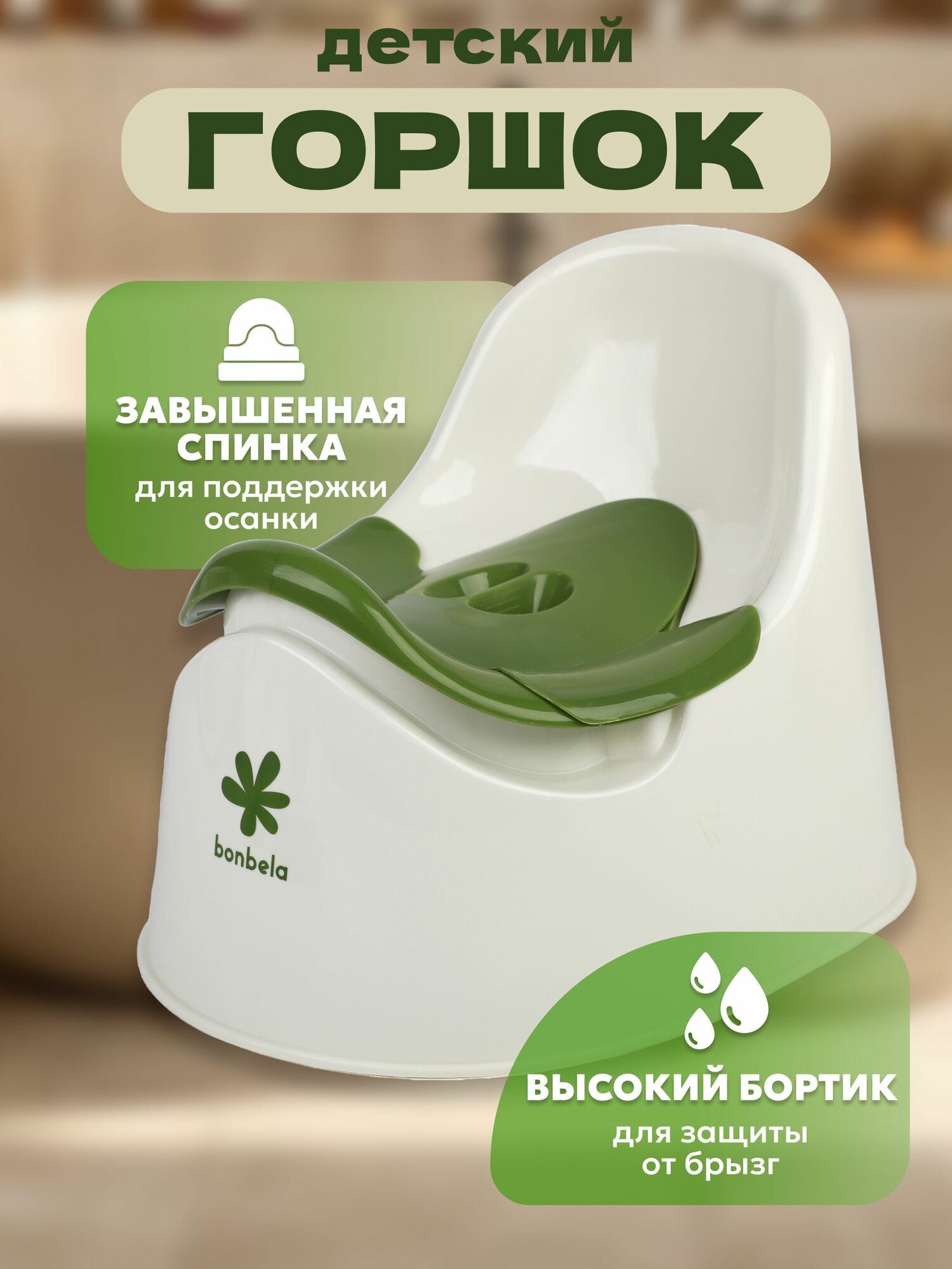 Горшок детский bonbela с крышкой, спинкой и съемной чашей, зеленый интересное: