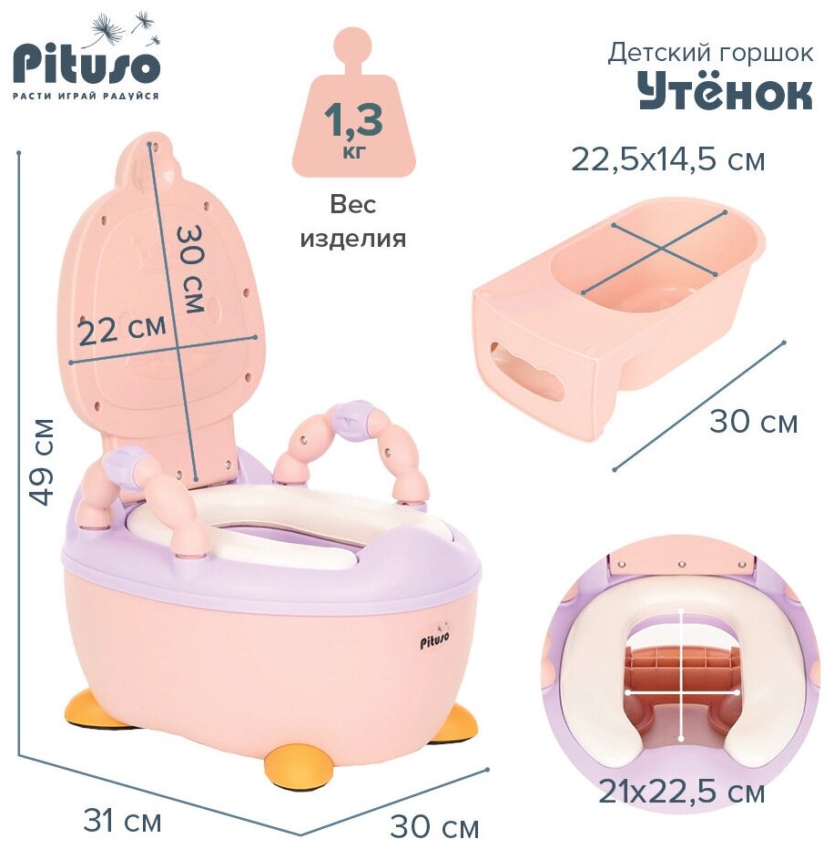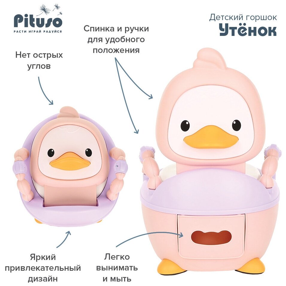 Горшок детский с высокой спинкой, крышкой и подлокотниками Pituso Утёнок, для девочки и мальчика, розовый интересное: