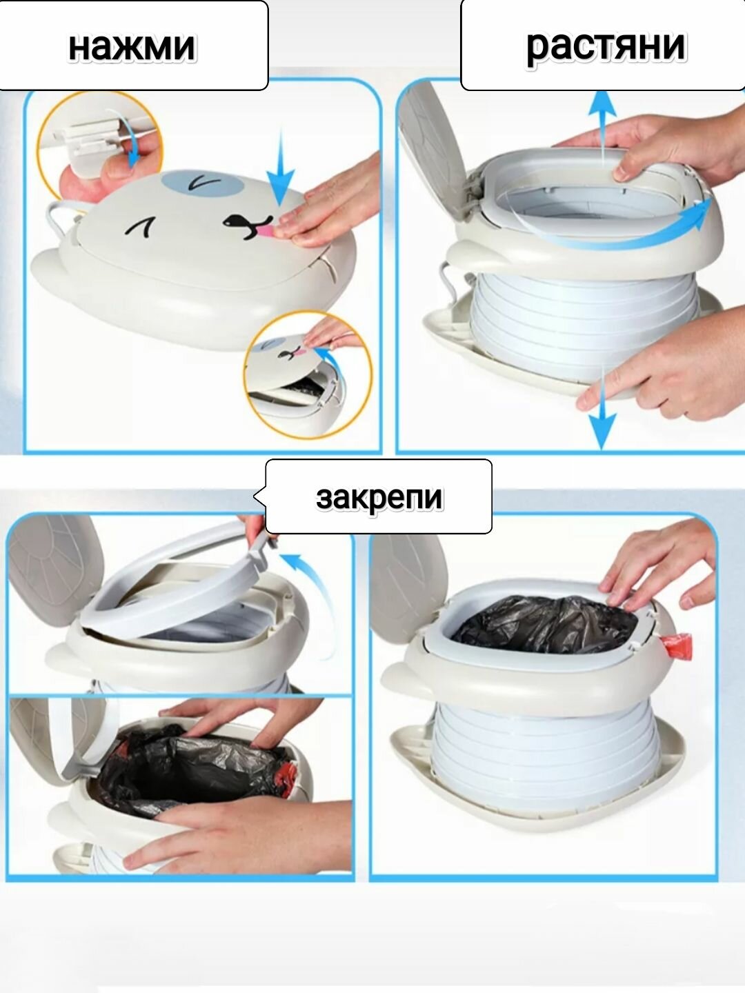 Детский складной дорожный горшок Green Will Day для мальчиков и девочек с сумкой для хранения. Серый интересное:
