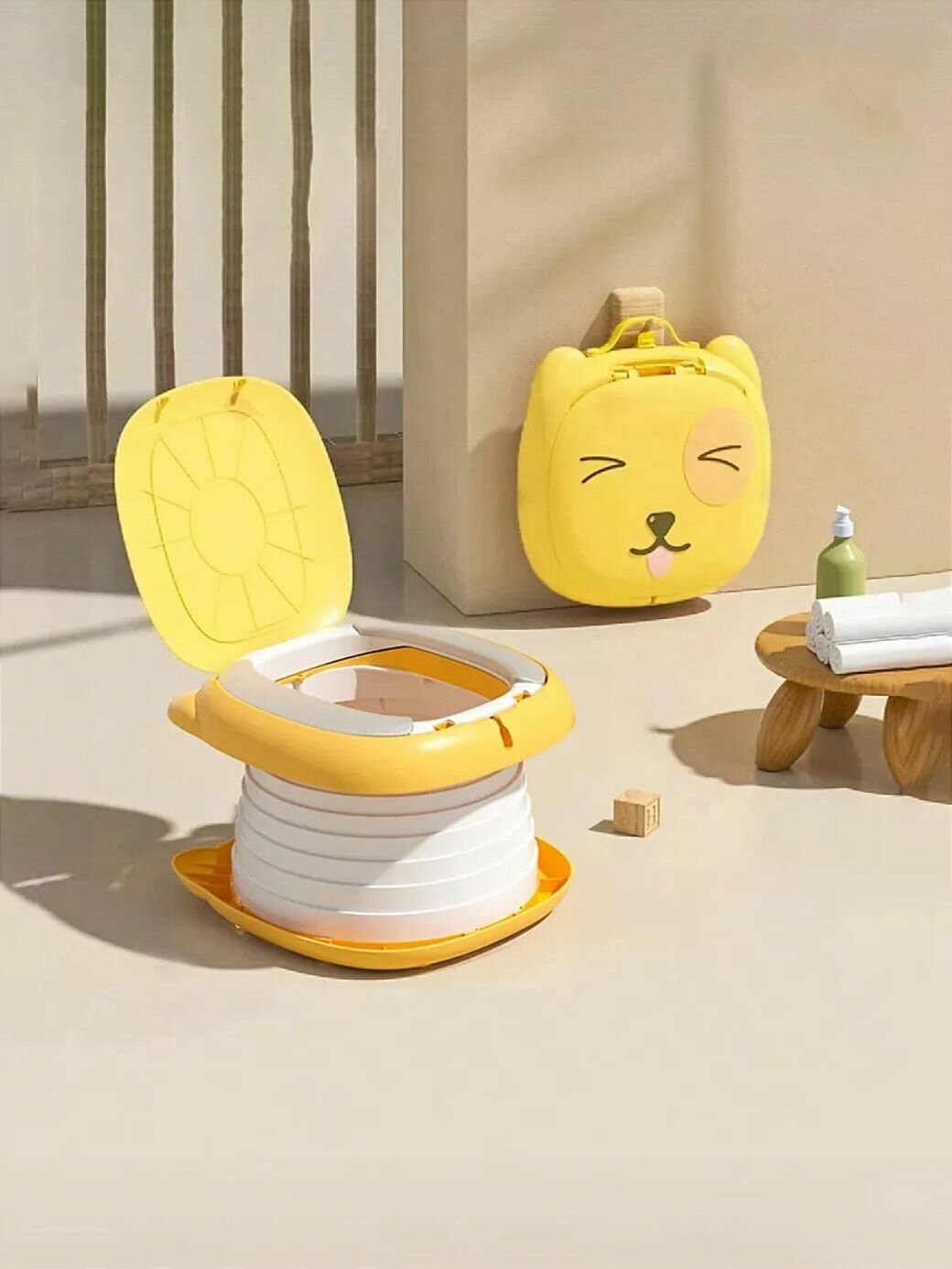 Детский складной дорожный горшок Green Will Day для мальчиков и девочек с сумкой для хранения. Жёлтый интересное: