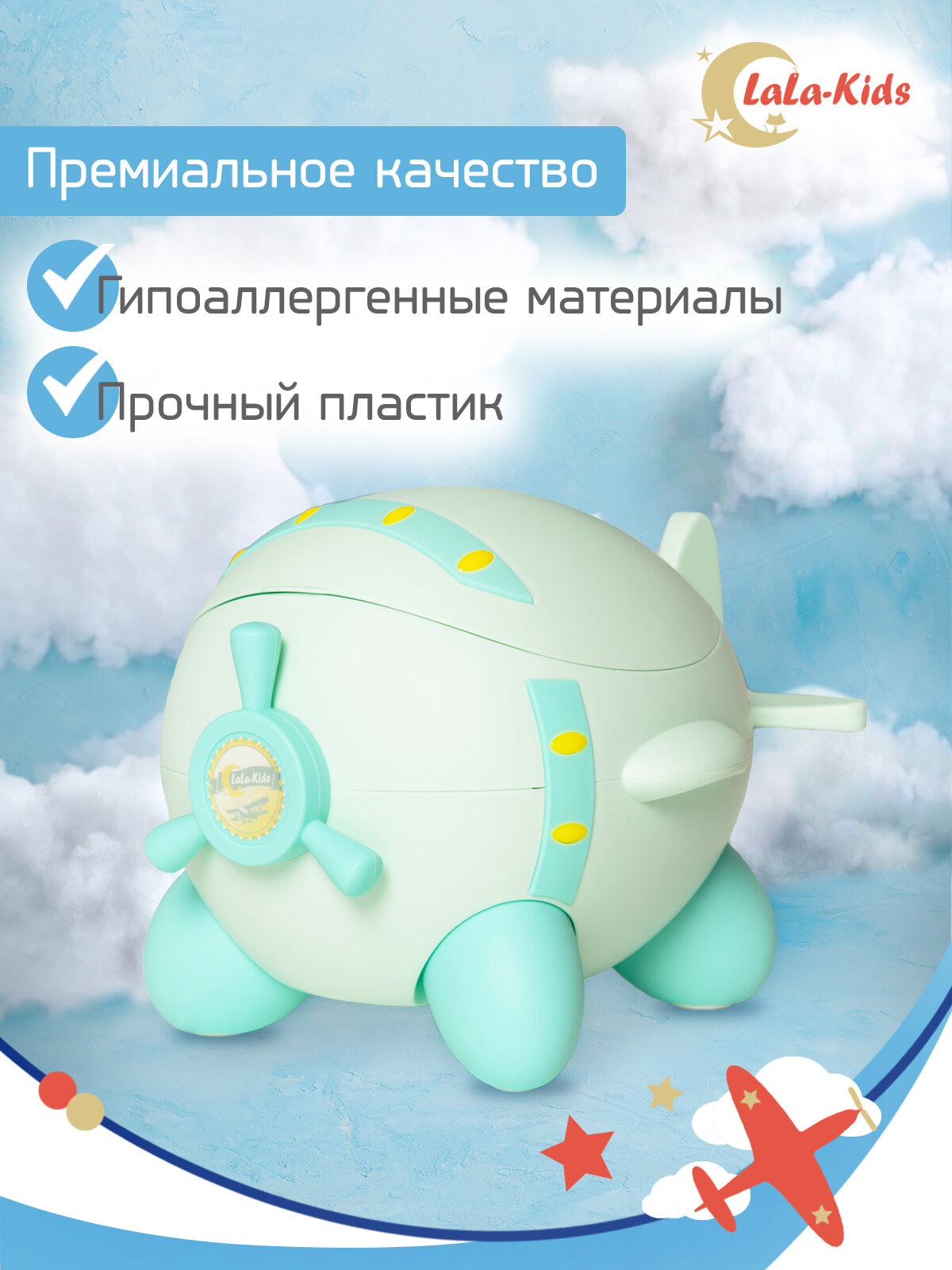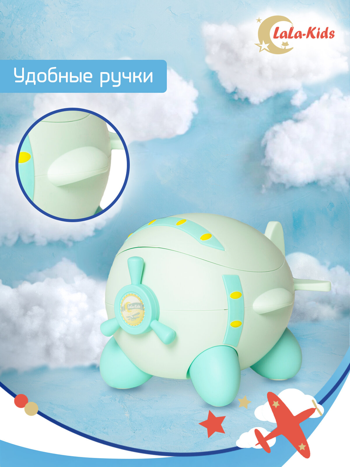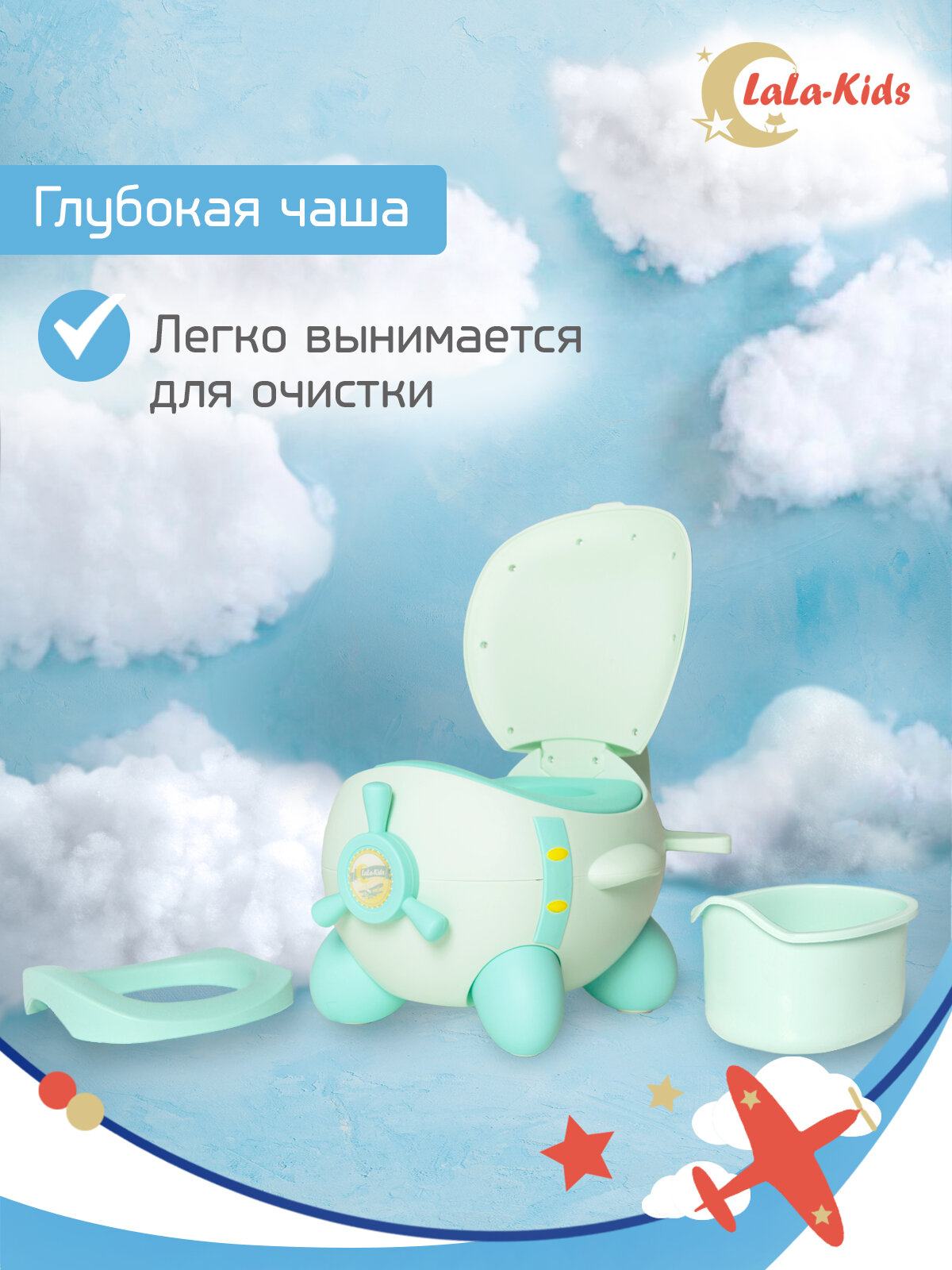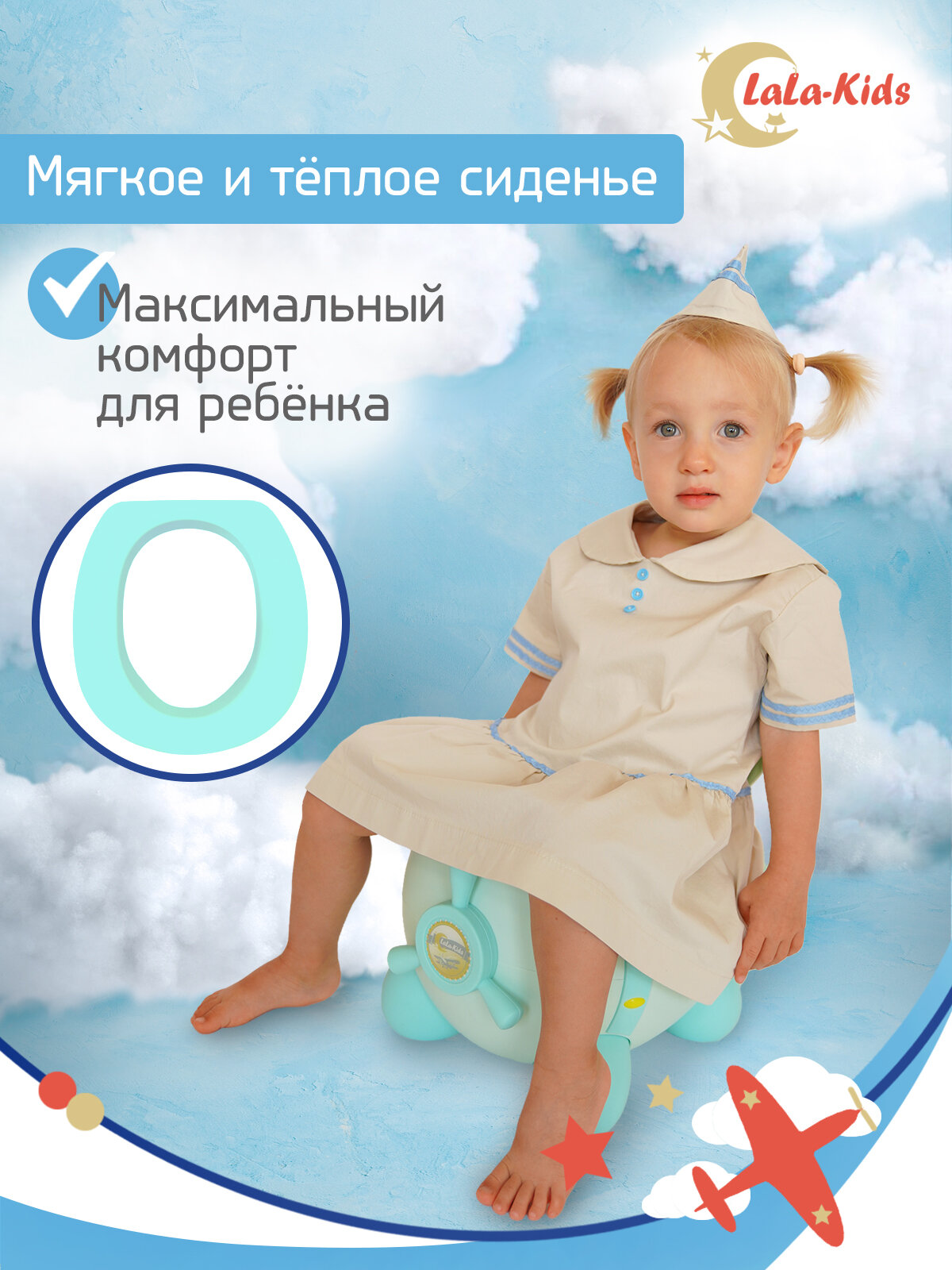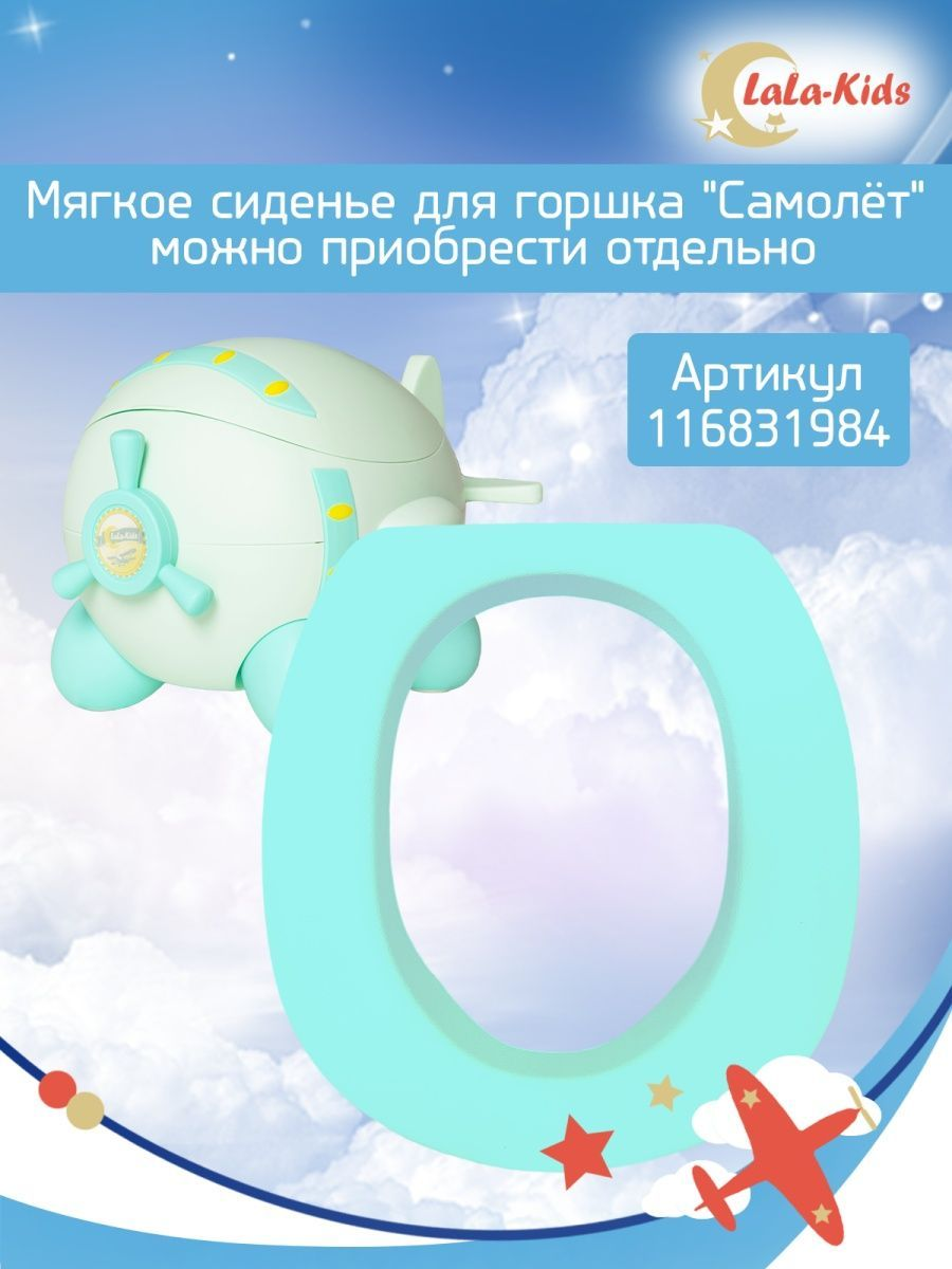 Горшок детский с мягким сиденьем и крышкой "Самолет" LaLa-Kids, голубой
