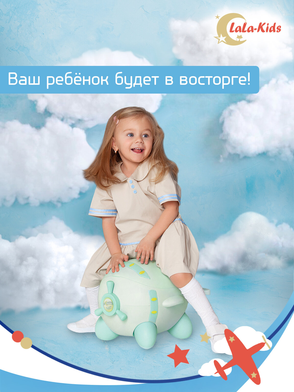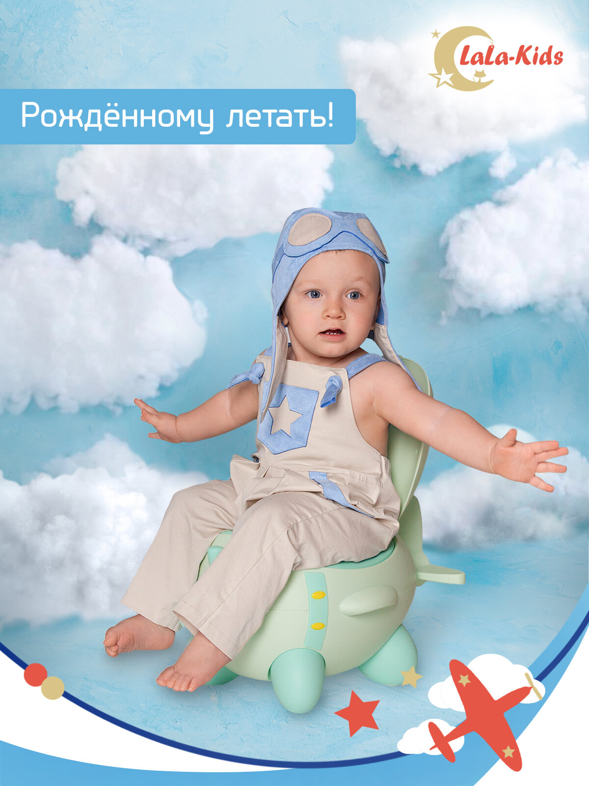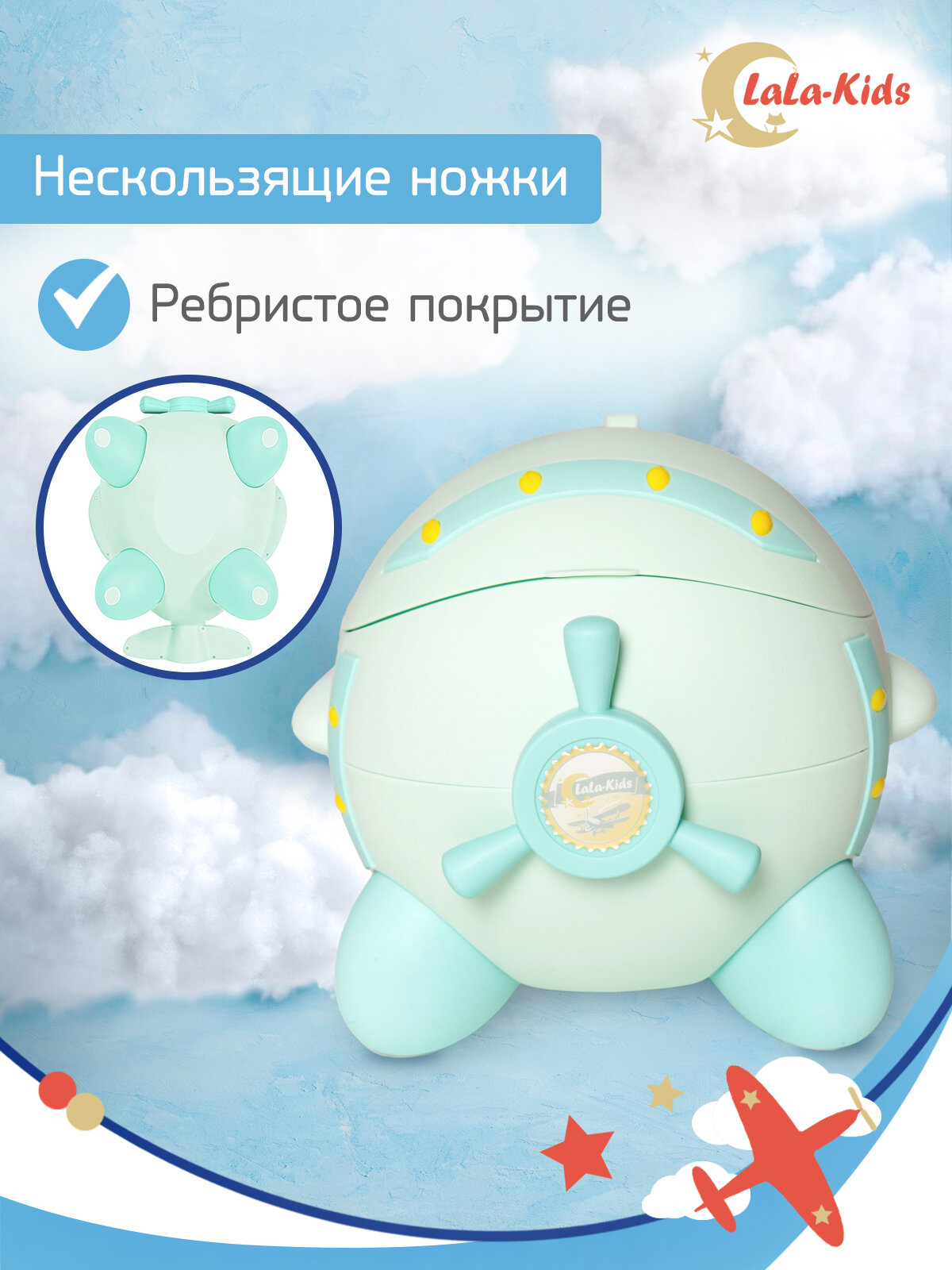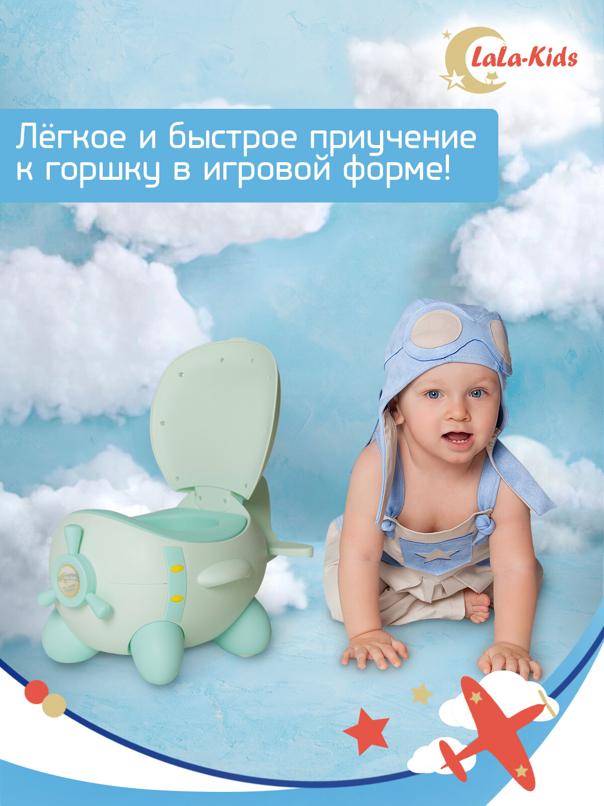 Горшок детский с мягким сиденьем и крышкой "Самолет" LaLa-Kids, голубой