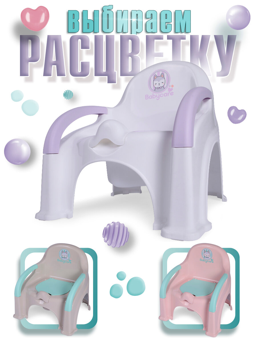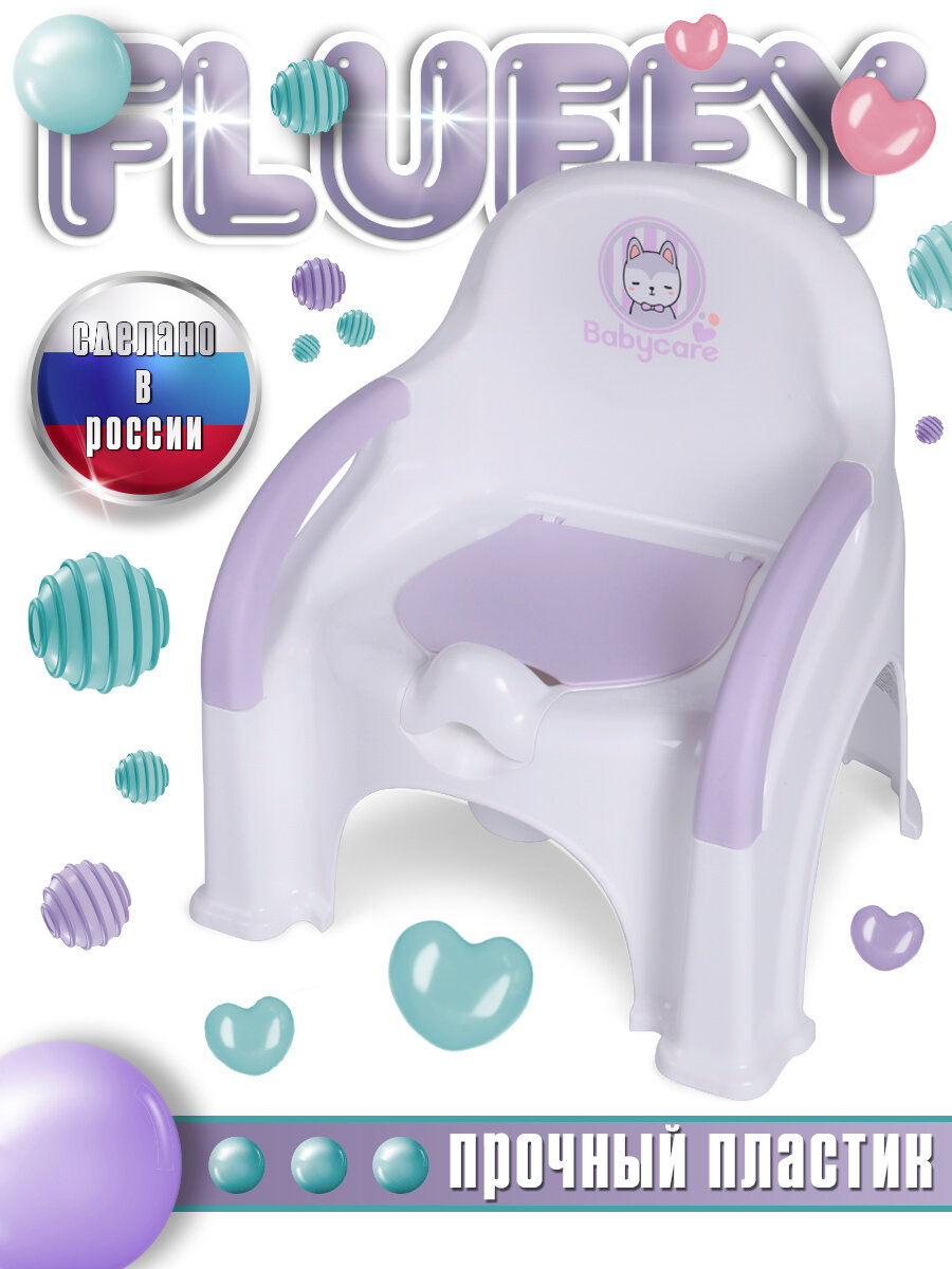 Купить Горшок-стул Babycare Fluffy, антибактериальный, с крышкой, спинка, белый/сиреневый