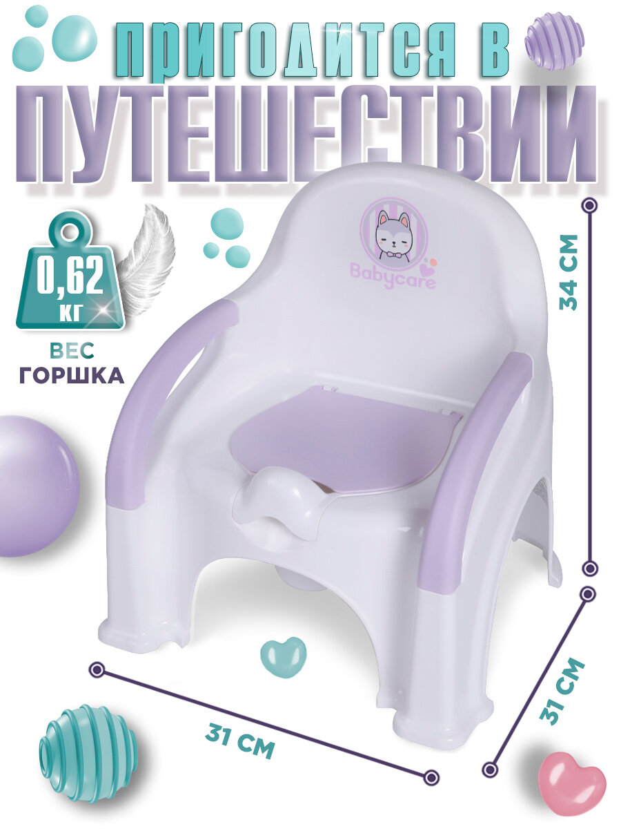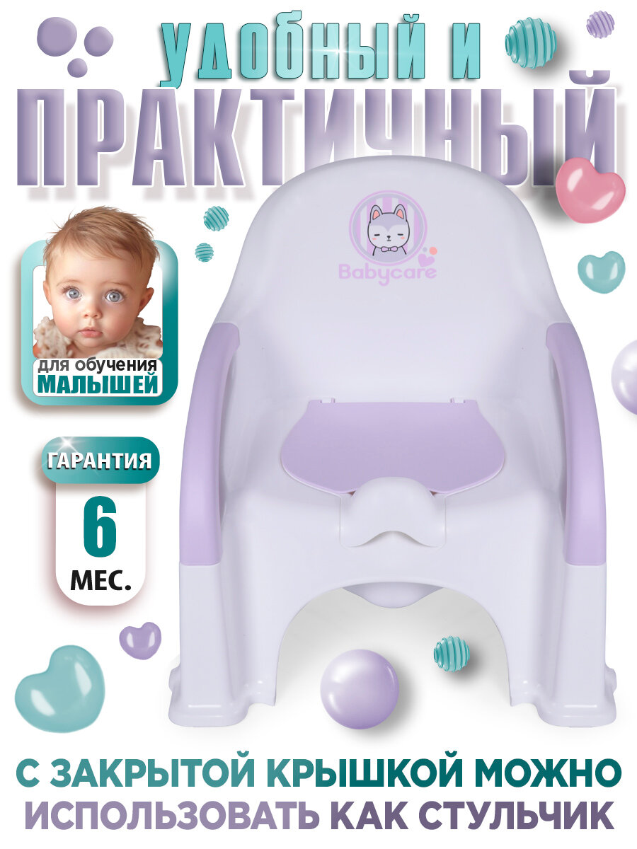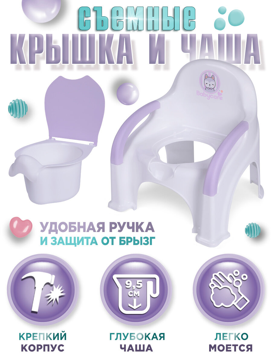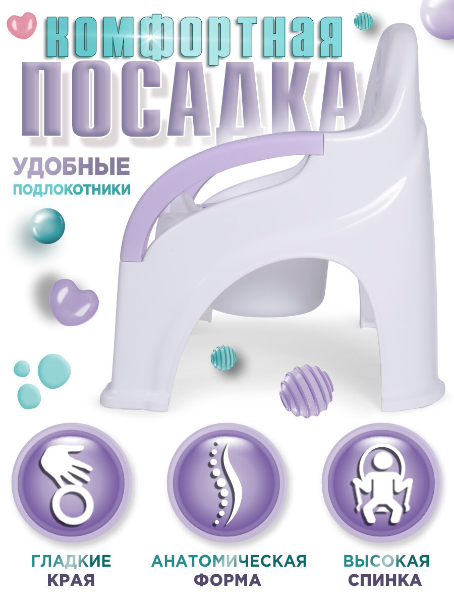 Горшок-стул Babycare Fluffy, антибактериальный, с крышкой, спинка, белый/сиреневый интересное: