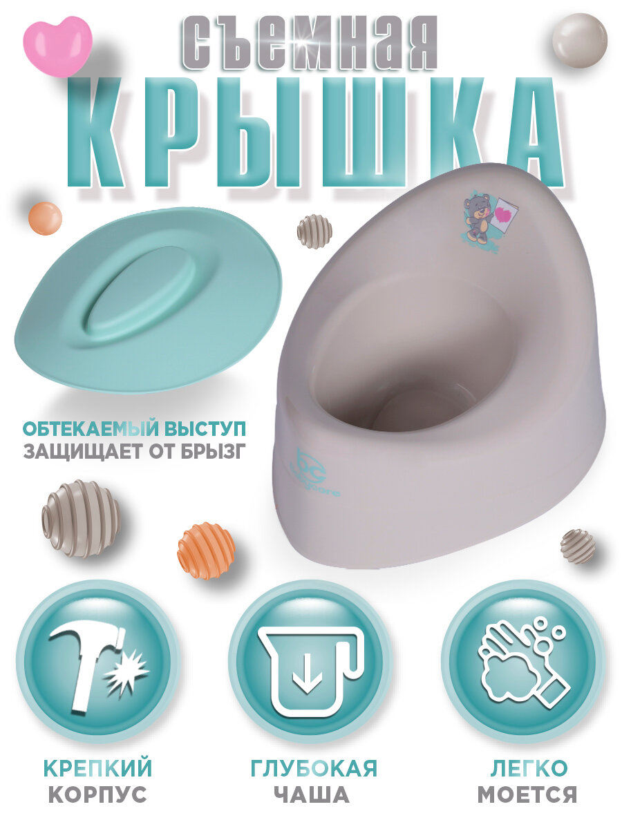 Купить Горшок детский Babycare Teddy, антиаллергенный, с крышкой, анатомический, от 6 месяцев, серый/мятный