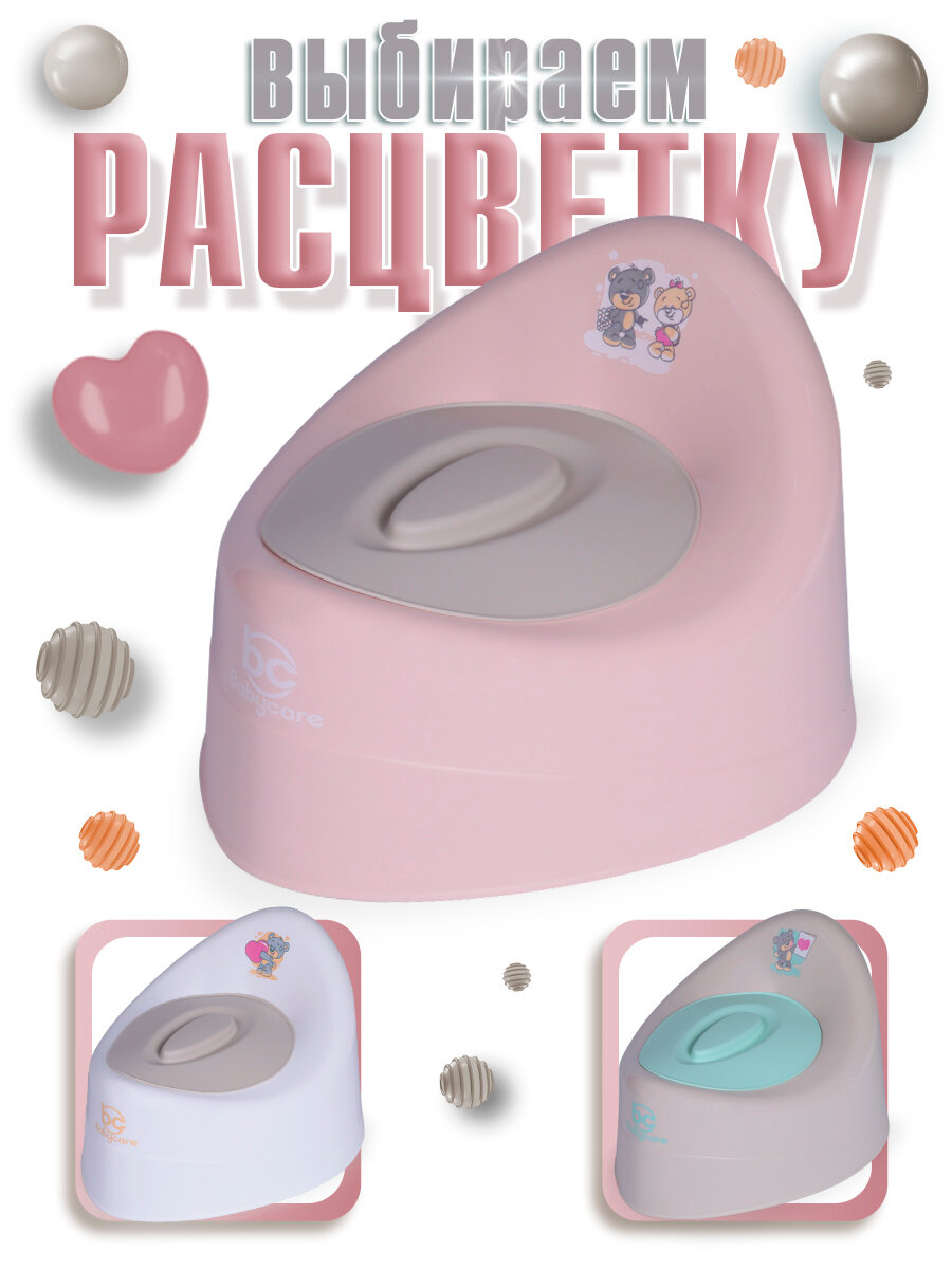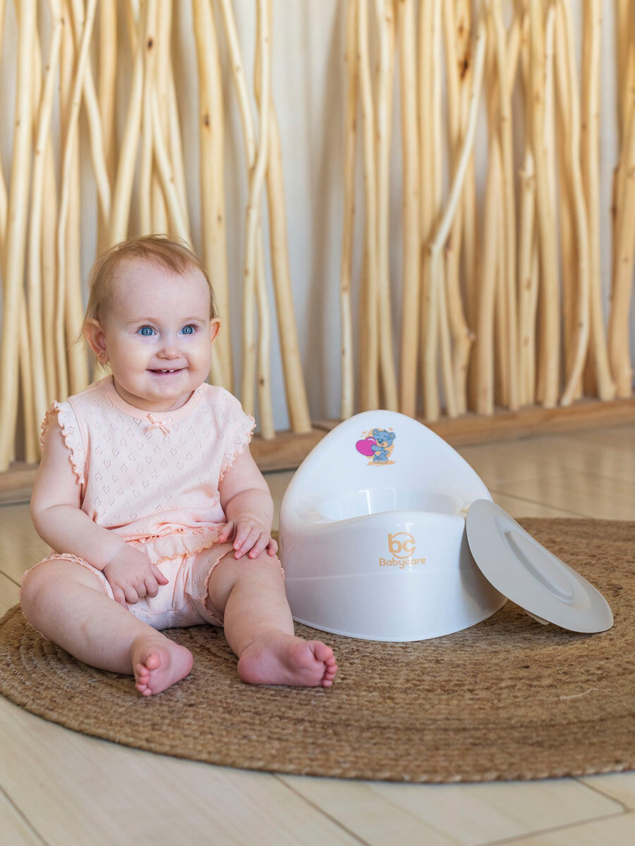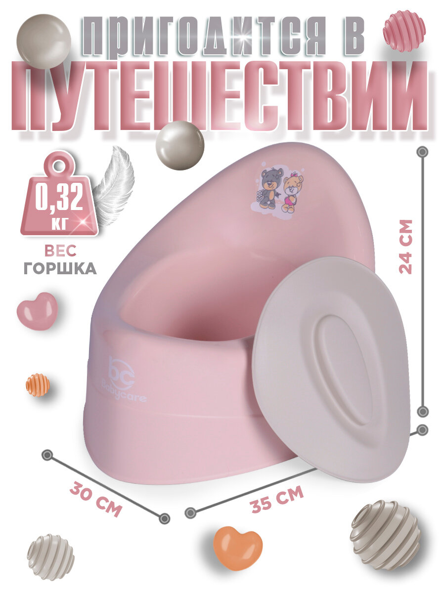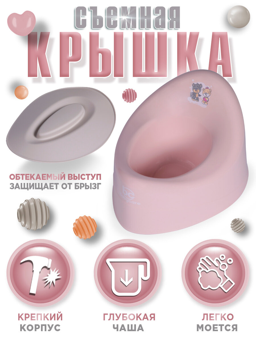 Горшок детский Babycare Teddy, антиаллергенный, с крышкой, анатомический, от 6 месяцев, розовый/серый интересное: