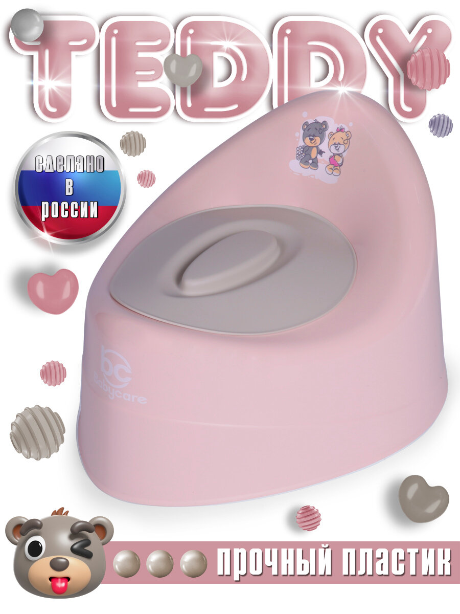 Купить Горшок детский Babycare Teddy, антиаллергенный, с крышкой, анатомический, от 6 месяцев, розовый/серый
