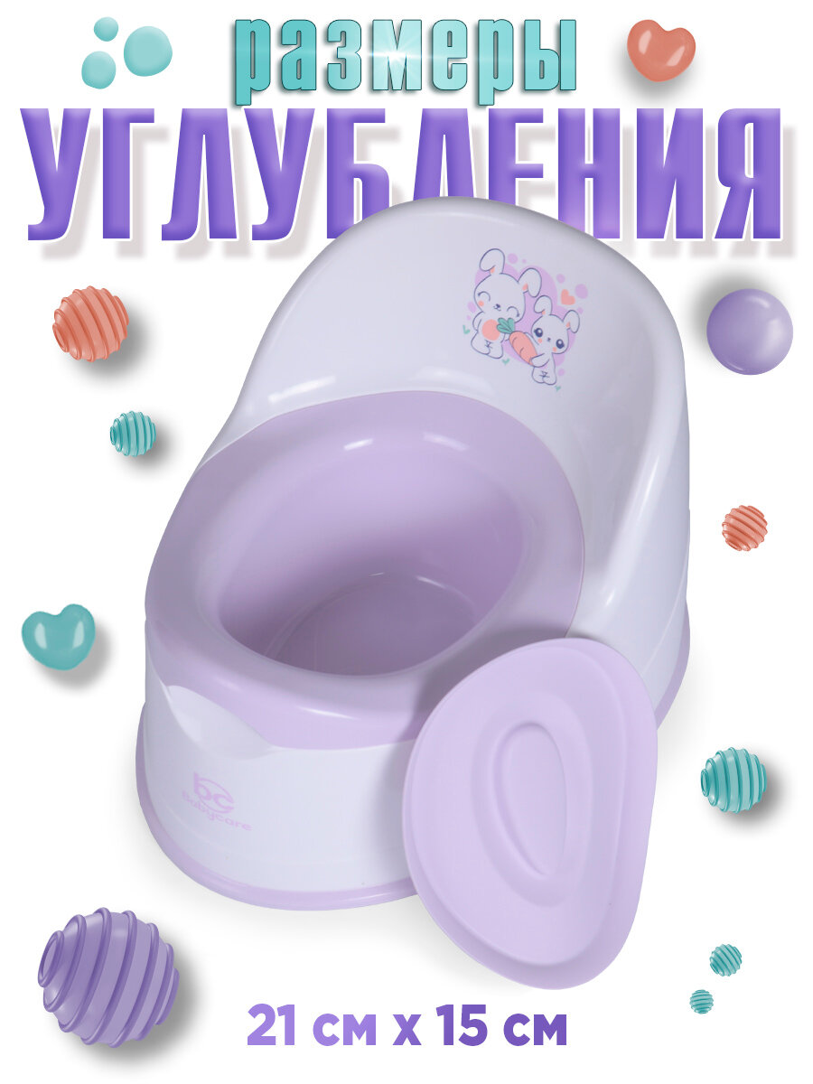 Горшок детский Babycare Bunny, антиаллергенный, с крышкой, анатомический, съемный, от 6 мес, розовый/сиреневый