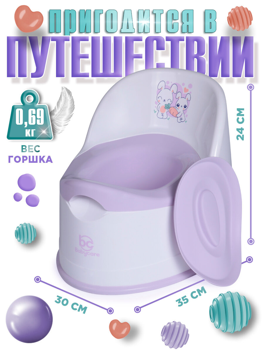 Купить Горшок детский Babycare Bunny, антиаллергенный, с крышкой, анатомический, съемный, от 6 мес, белый/сиреневый