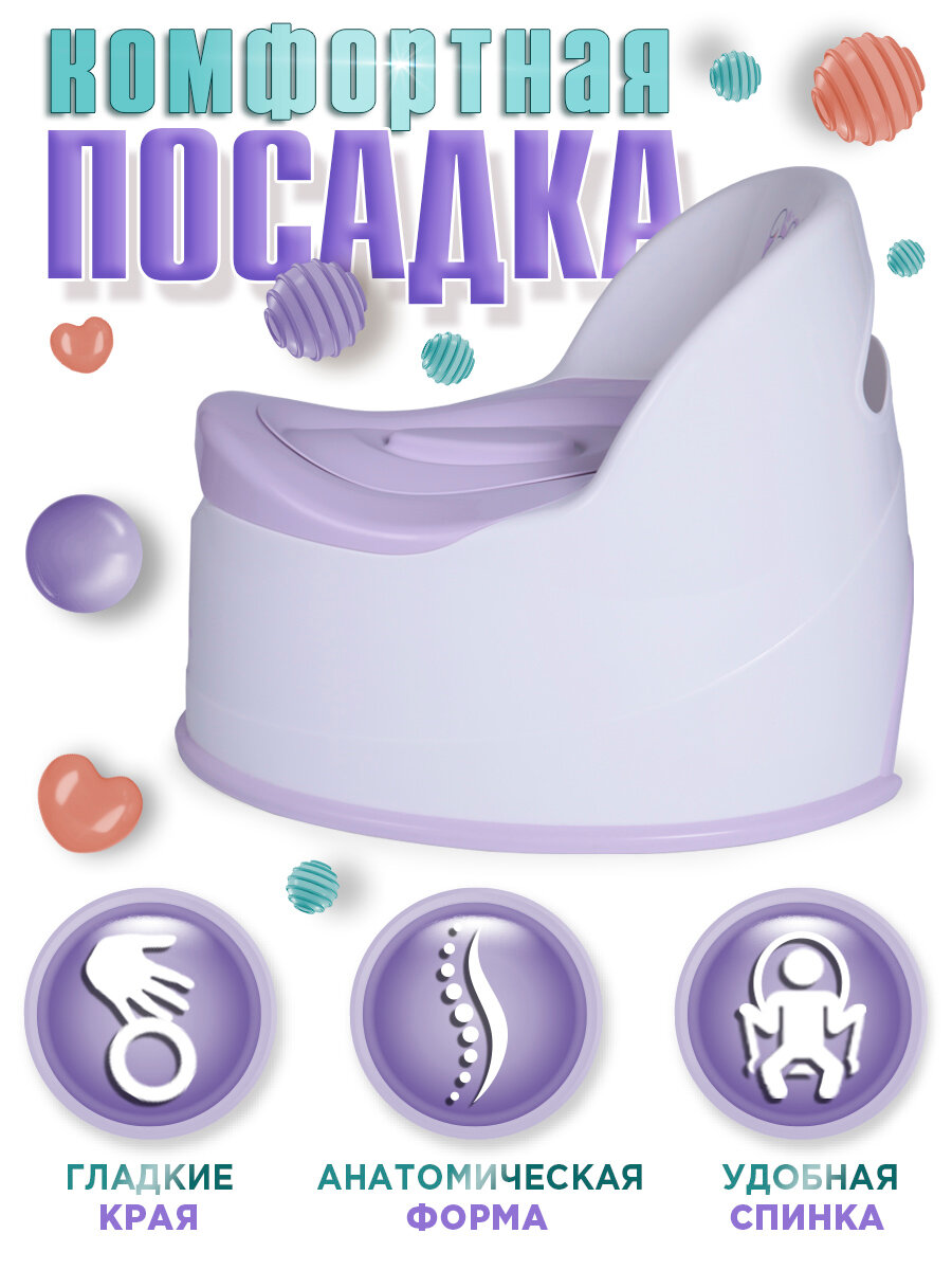 Горшок детский Babycare Bunny, антиаллергенный, с крышкой, анатомический, съемный, от 6 мес, белый/сиреневый интересное: