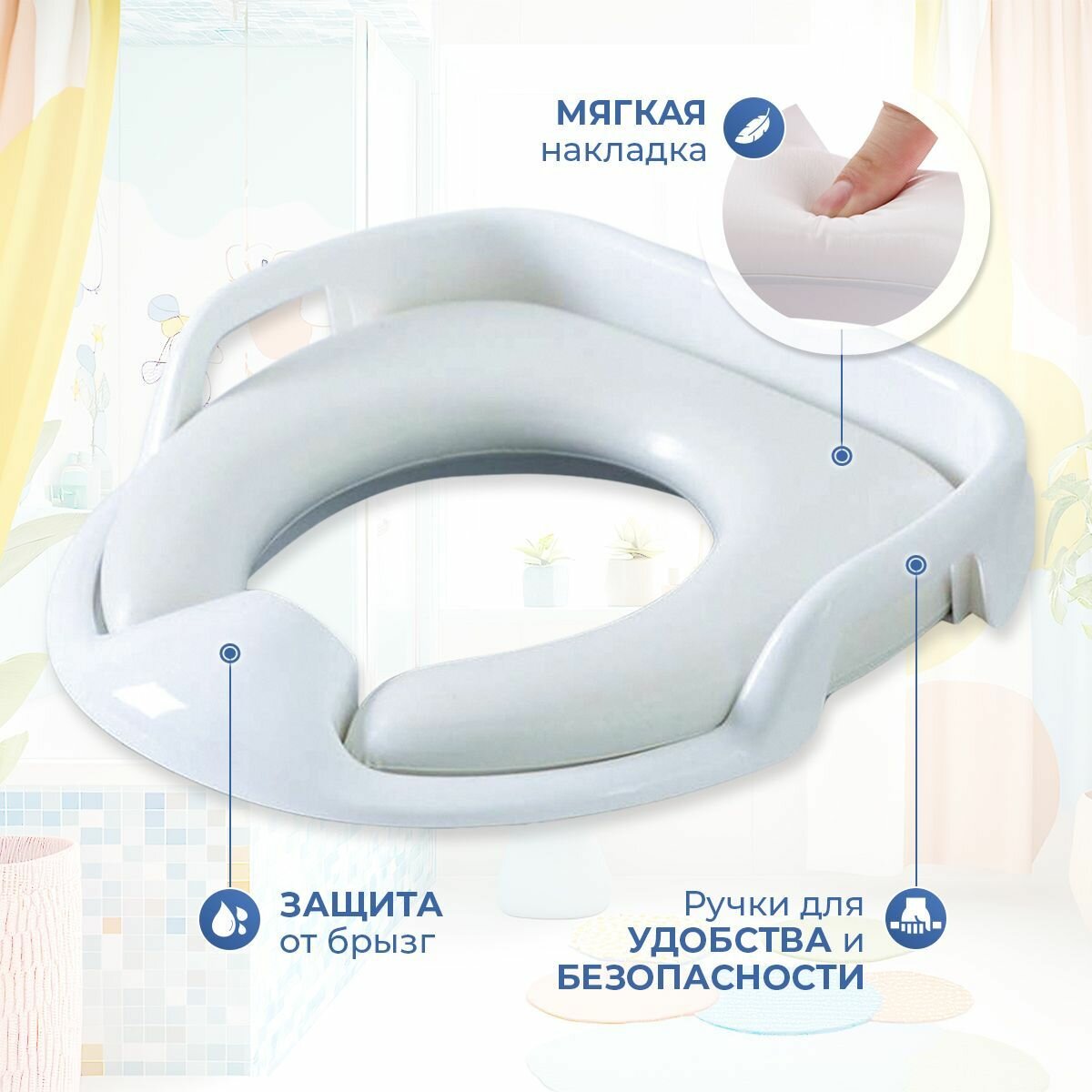 Купить Сиденье для унитаза детское мягкое / накладка на унитаз детская мягкая / адаптер / белое