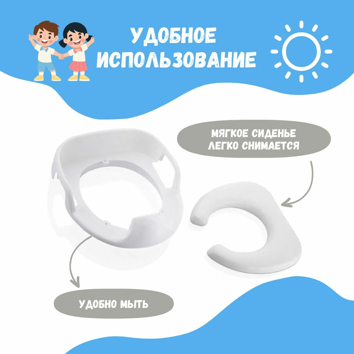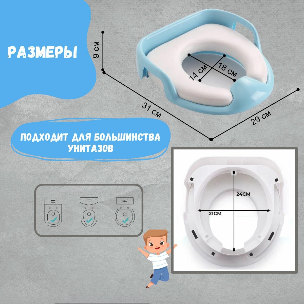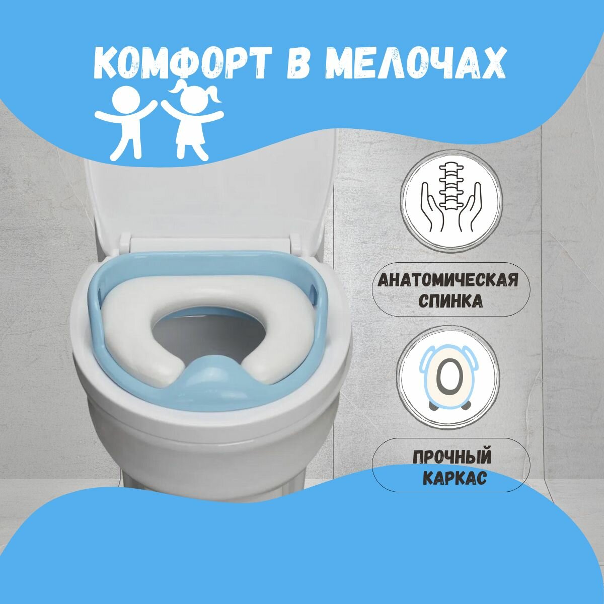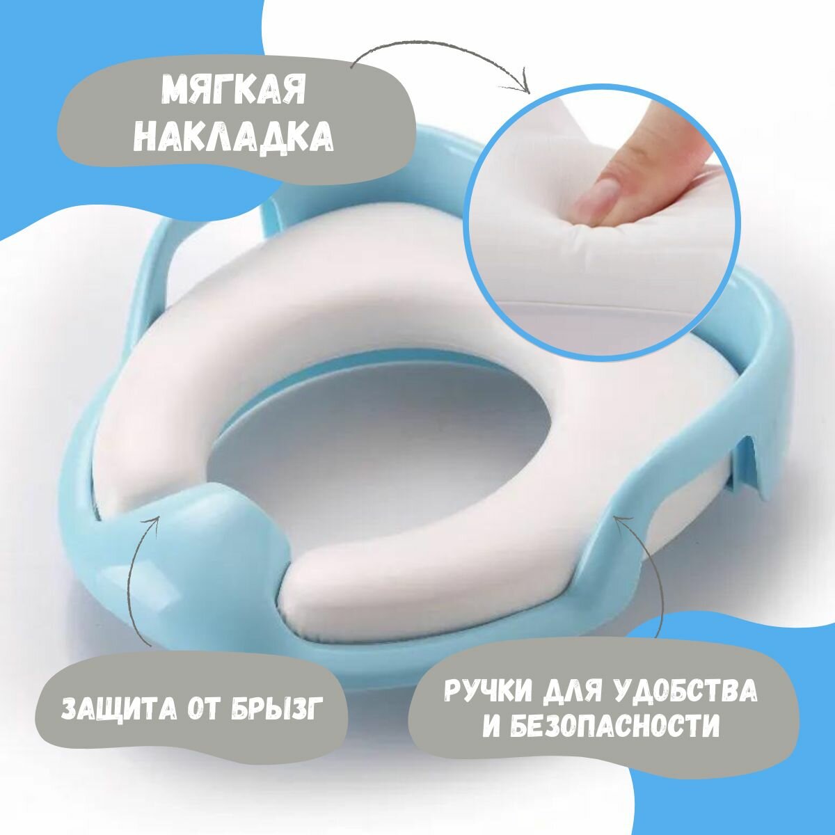Сиденье для унитаза детское мягкое / накладка на унитаз детская мягкая / адаптер / голубое интересное:
