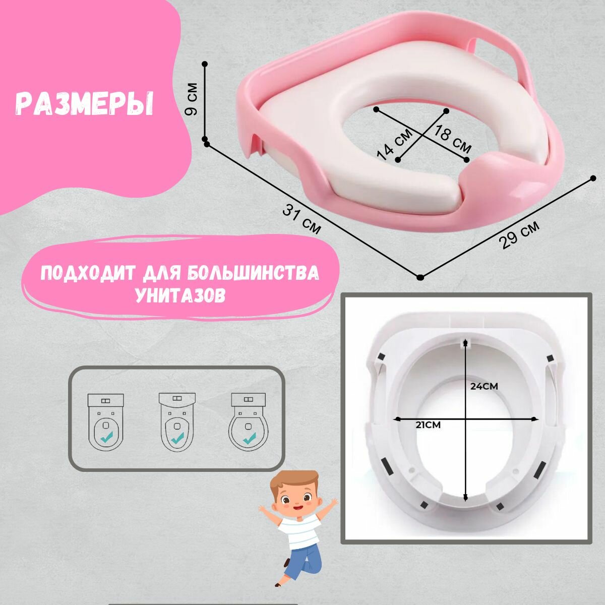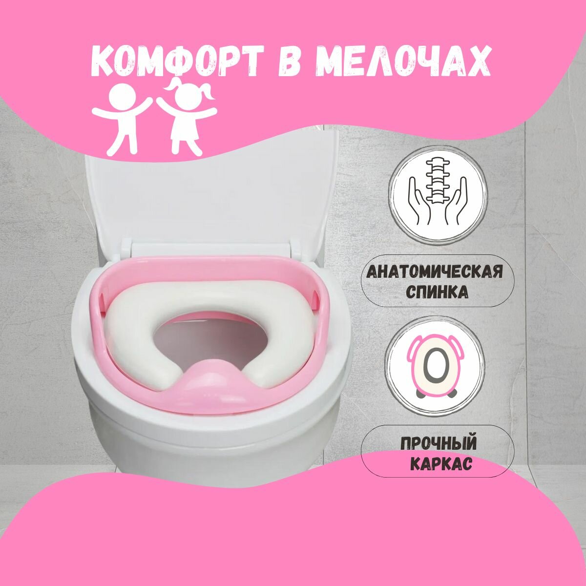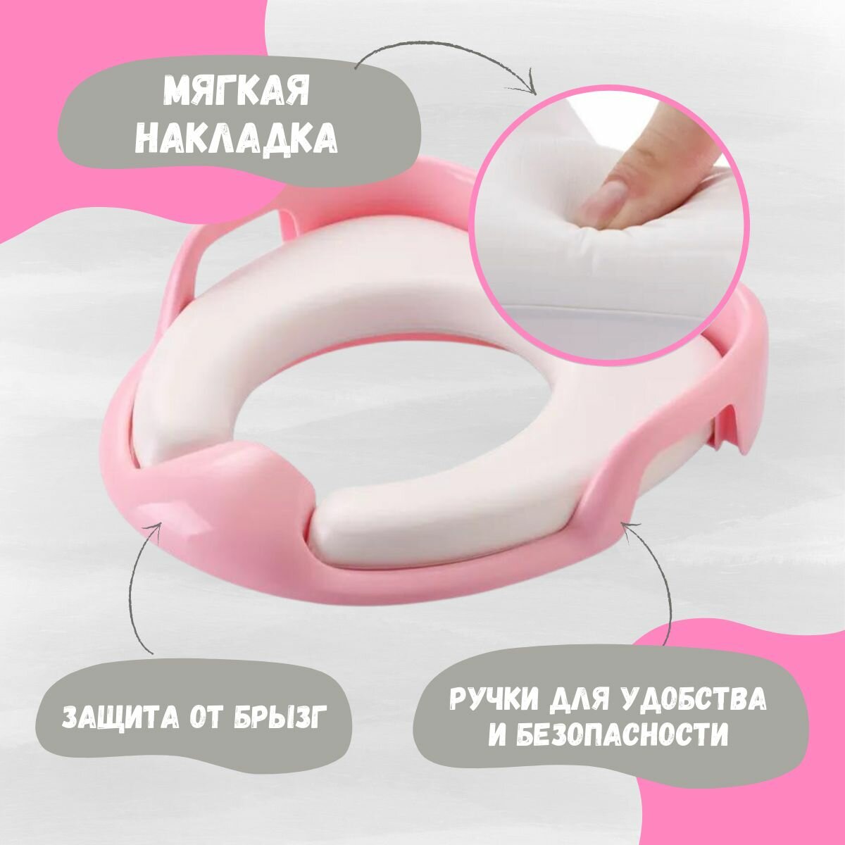 Сиденье для унитаза детское мягкое / накладка на унитаз детская мягкая / адаптер / розовое интересное: