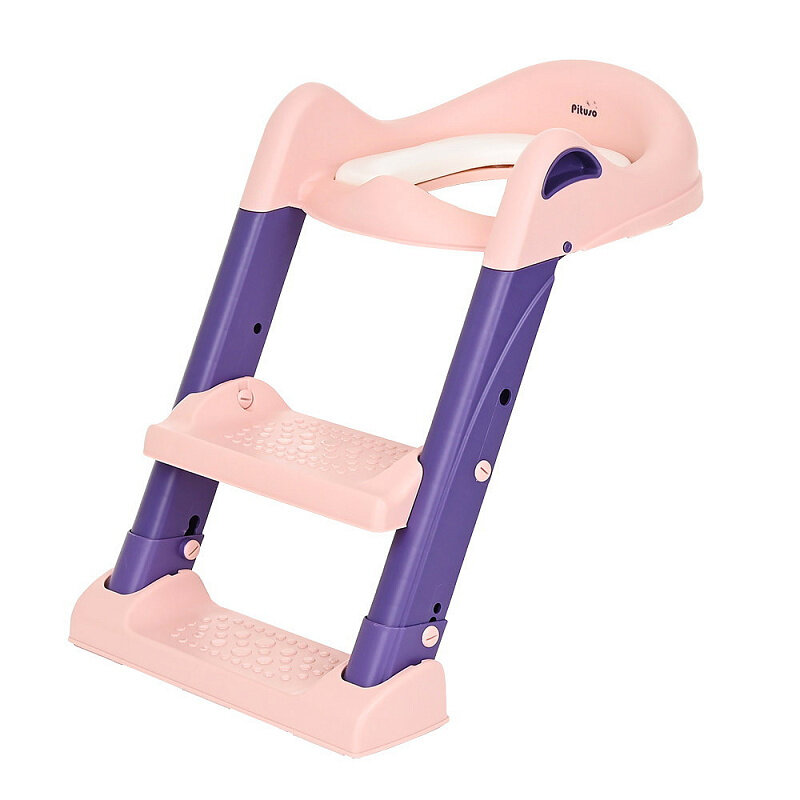 Сиденье-накладка для унитаза Pituso детское складное с лесенкой и ручками, Red/Коралл