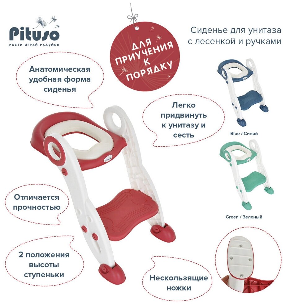 Сиденье для унитаза Pituso с лесенкой и ручками Red/Красный интересное: