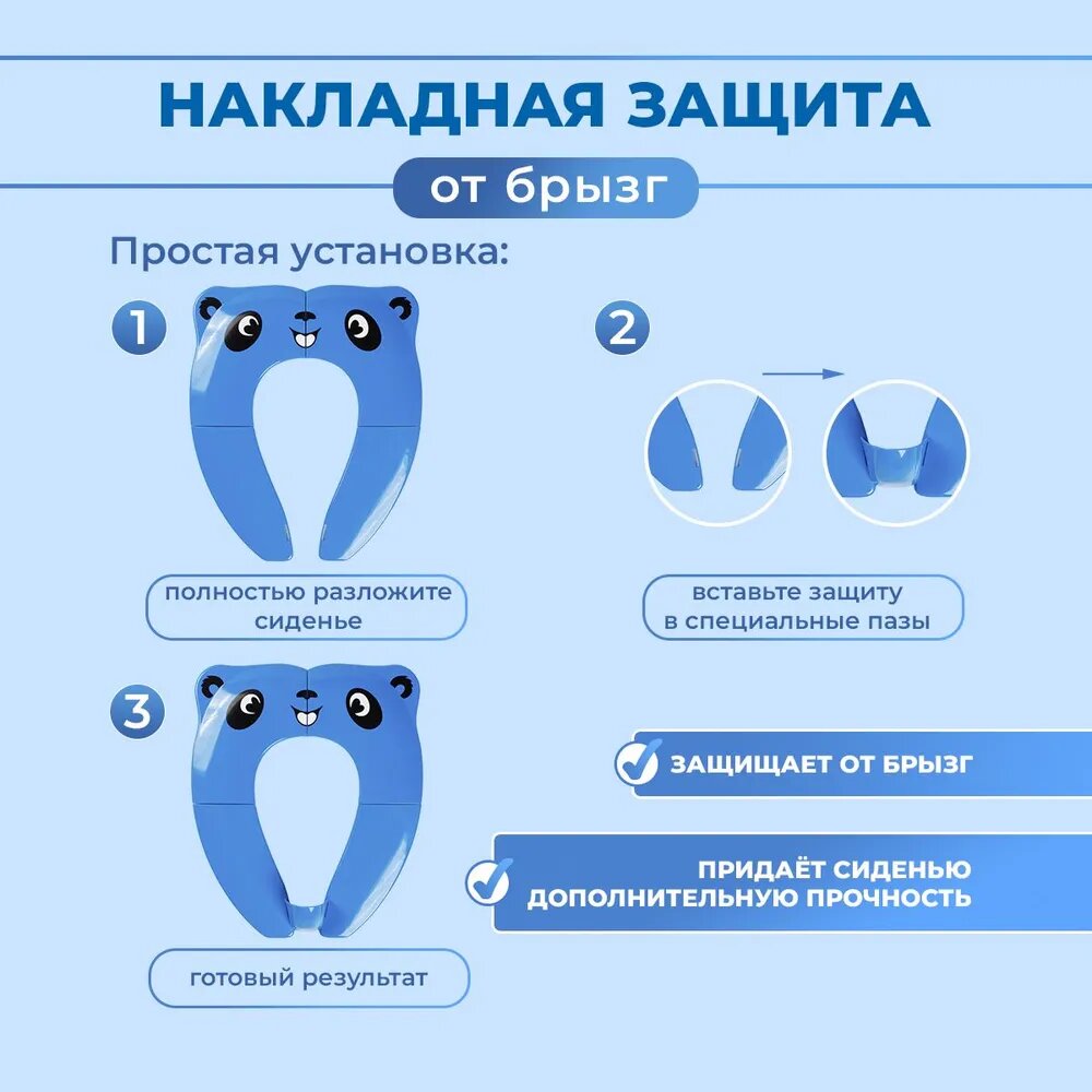 Сиденье для унитаза ST Group Panda, детское, складное, антискользящее, с сумкой, голубое интересное: