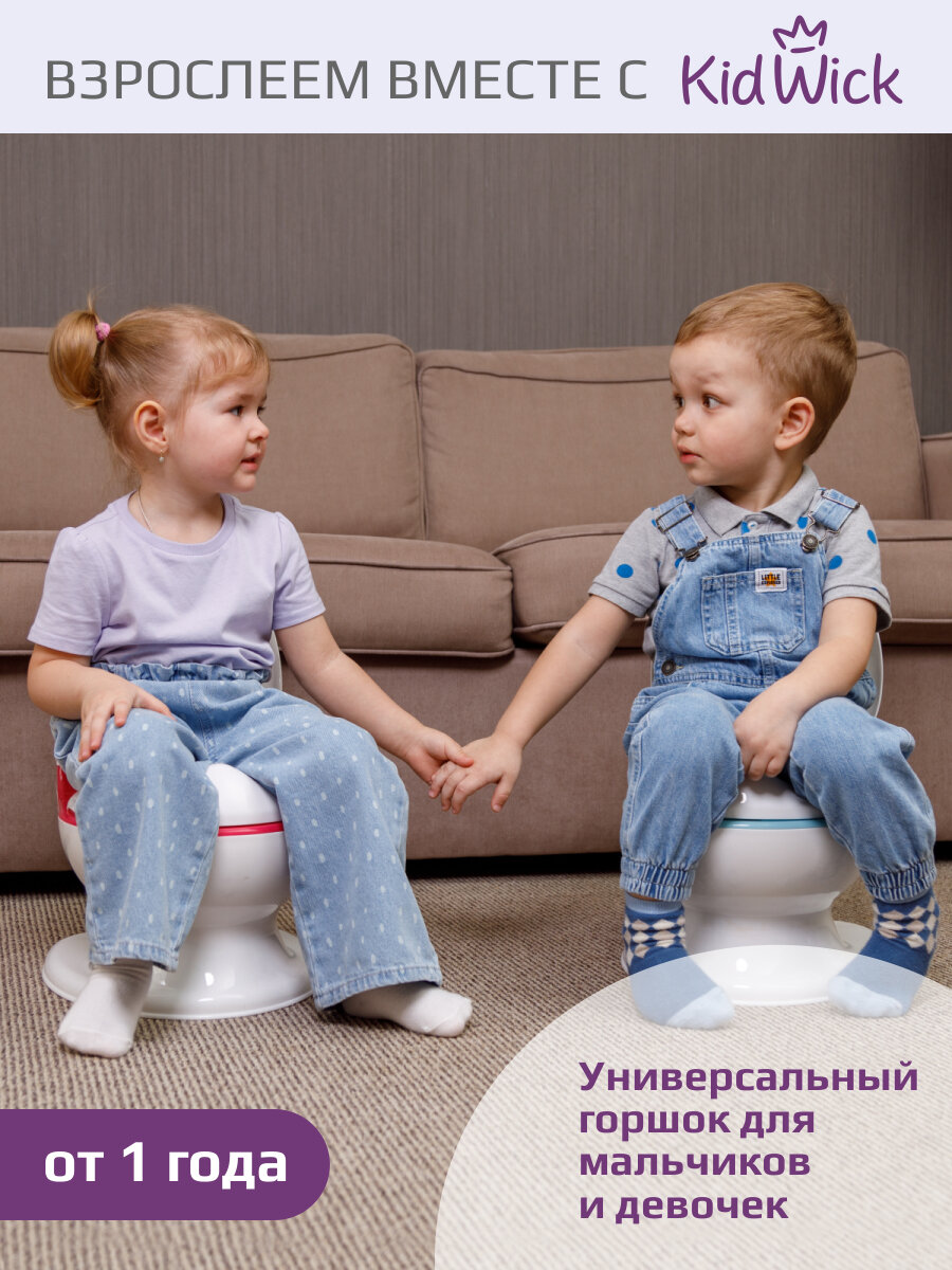 Детский горшок KidWick, музыкальный, со спинкой, съемной чашей, бело-голубого цвета