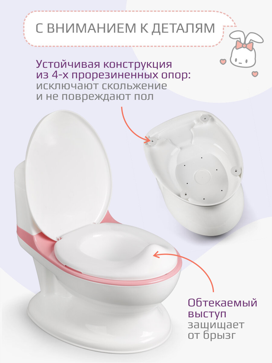 Горшок-унитаз KidWick, с крышкой, музыкальный, пластик, 1-4 года, розовый интересное: