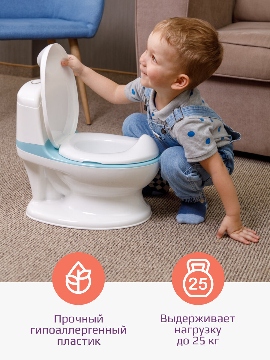 Детский горшок KidWick, музыкальный, со спинкой, съемной чашей, бело-голубого цвета