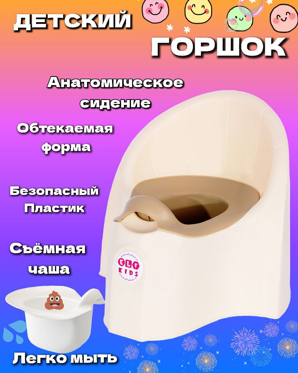 Купить Детский горшок Elfplast, съемный, анатомический, с защитой от брызг, бежевый, 1 шт