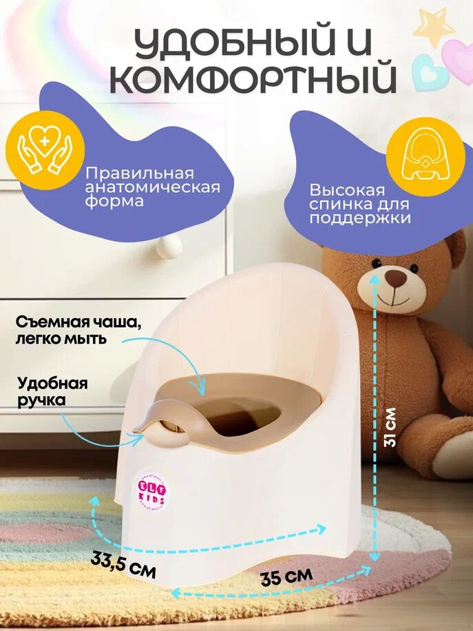 Детский горшок Elfplast, съемный, анатомический, с защитой от брызг, бежевый, 1 шт интересное: