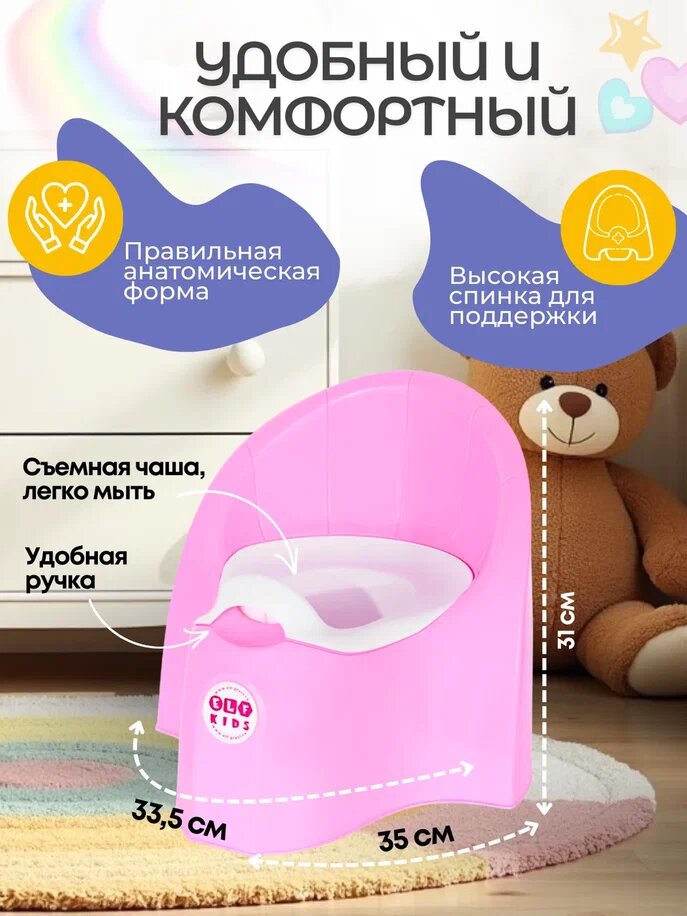 Детский горшок Elfplast, анатомический, розовый, съемный, 36,5x33,5x31 см интересное: