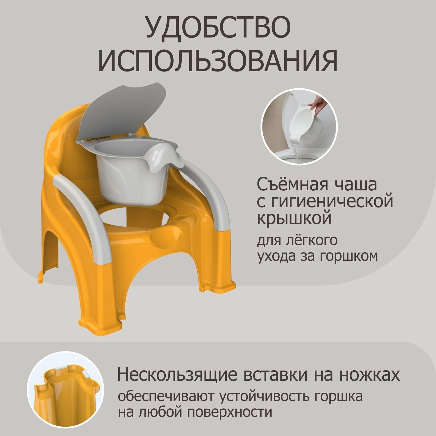 Горшок детский BeBest Great, оранжевый с серой крышкой интересное: