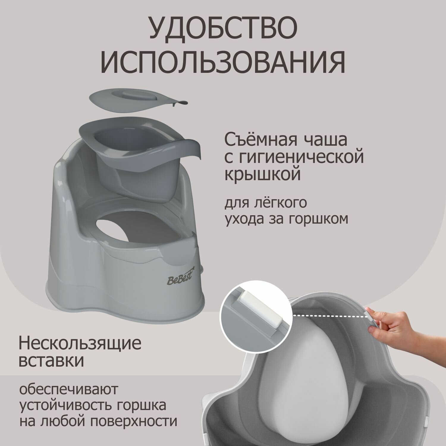 Горшок детский BeBest Joy, серый с серой крышкой интересное: