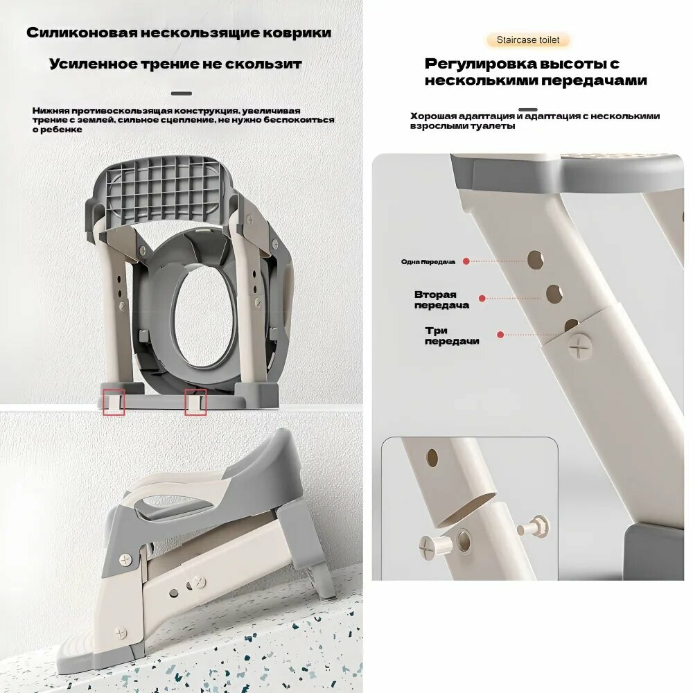 Сиденье для унитаза yn, детское, с лестницей, складное, анатомическое, серый