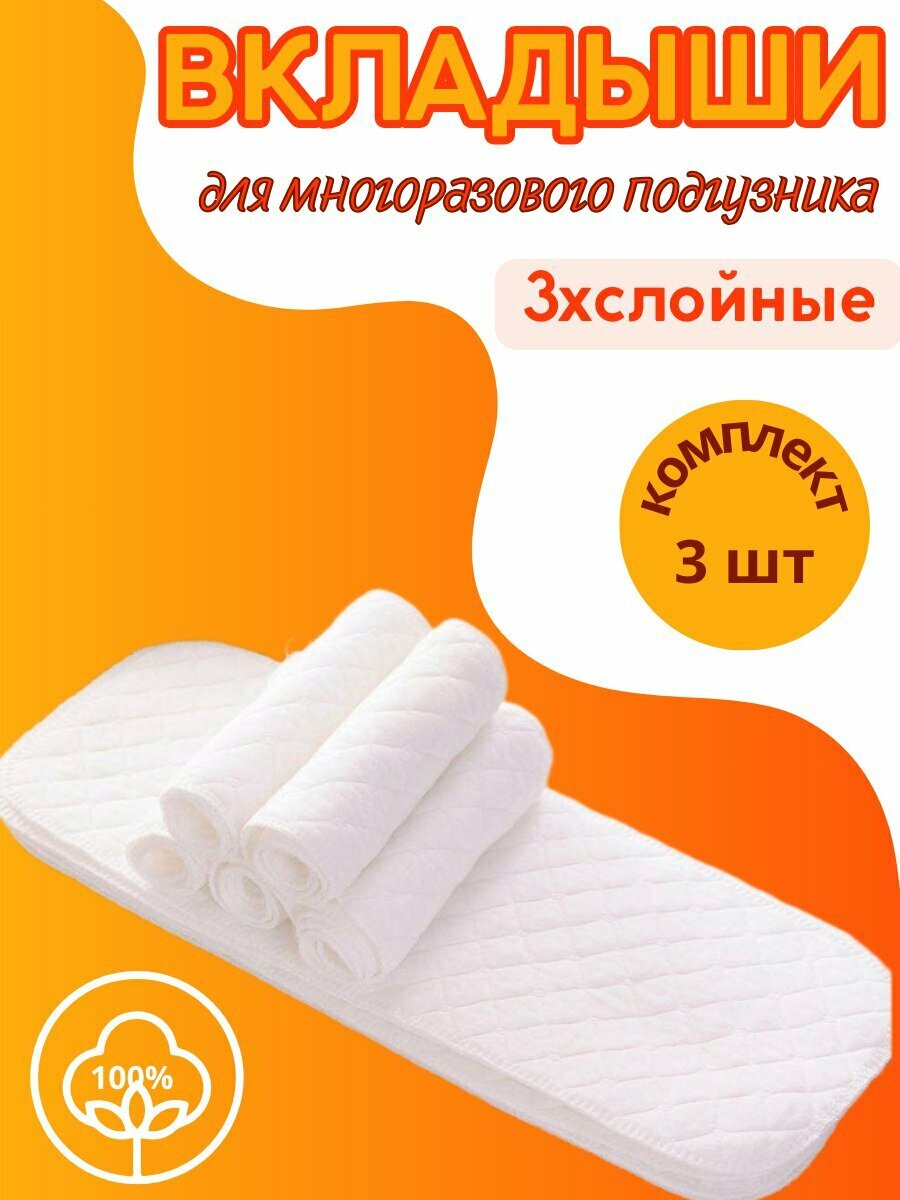 Вкладыши для многоразовых подгузников, 3-слойные, комплект 3 шт, белые интересное: