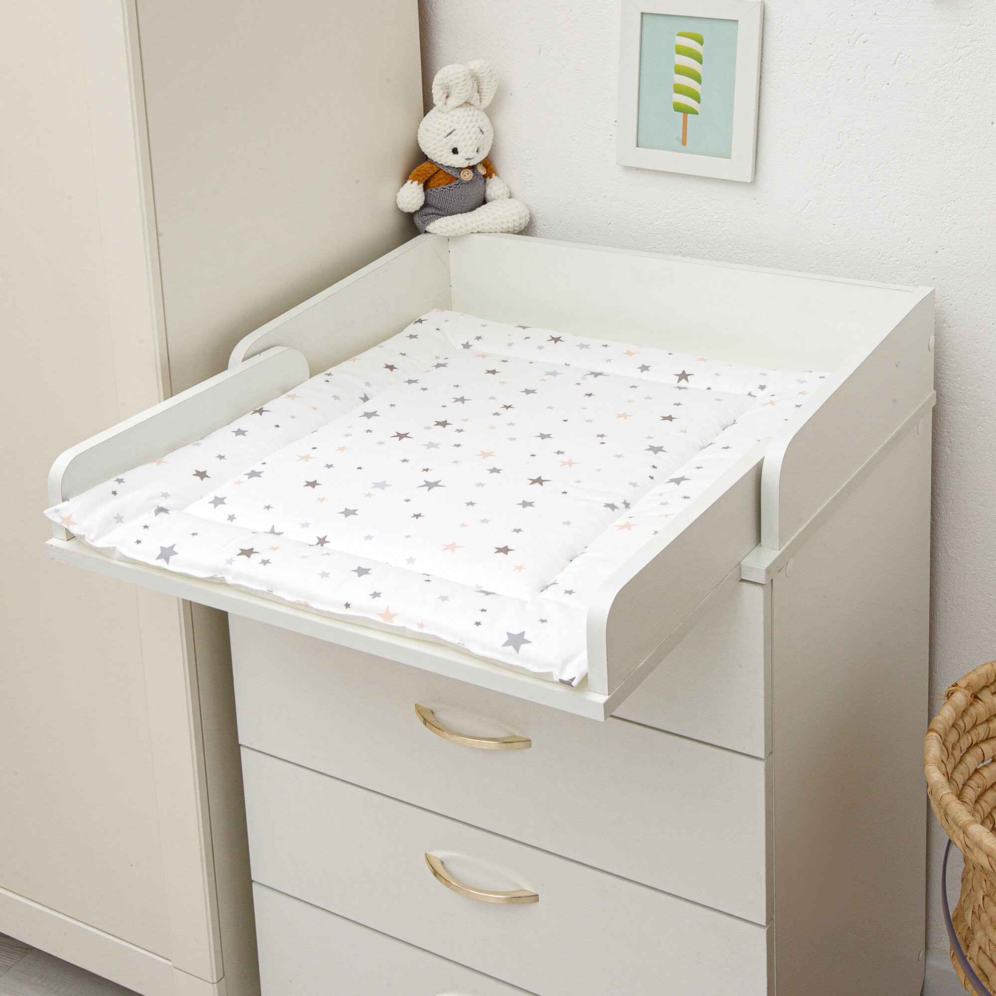 Купить Матрас пеленальный двухсторонний для комода шириной 60 см. звездопад цветной