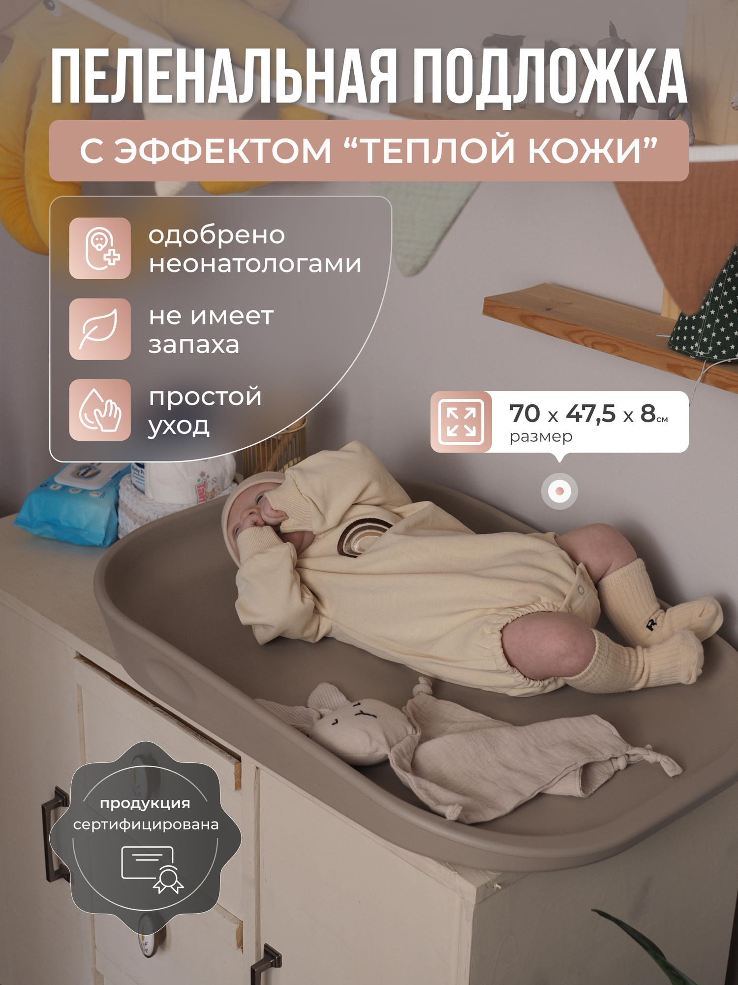 Пеленальный матрас "Pelenator", бежевый, непромокаемый, 70x47,5x8см интересное: