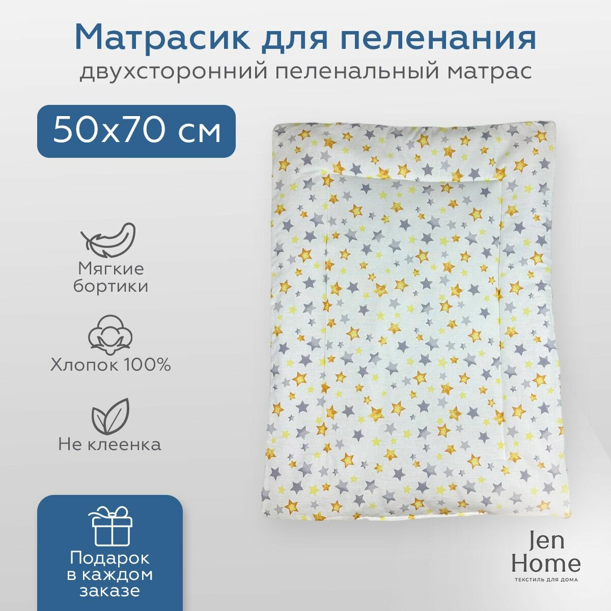 Матрас для пеленания JenHome 100% хлопок, размер 50x70 Звезды золото интересное: